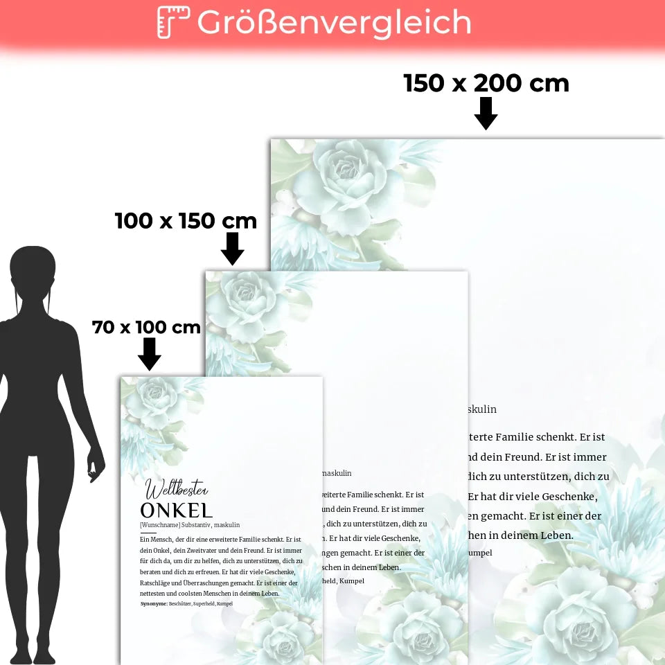 Warte nicht länger und gestalte jetzt die personalisierte Decke Floral Blau Definition Onkel mit Name. Hole dir dieses exklusive Produkt mit der einzigartigen Kombination aus Stil und individueller Note!