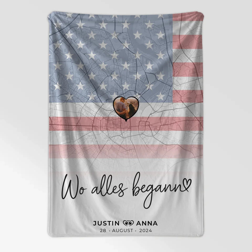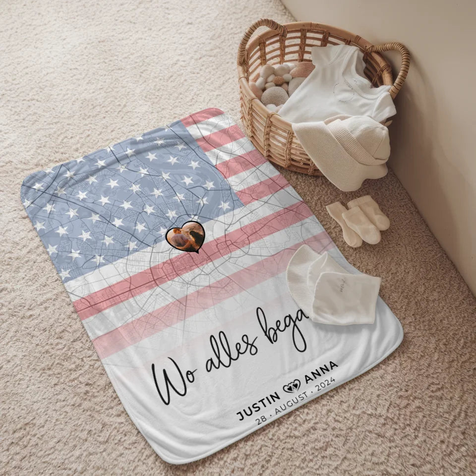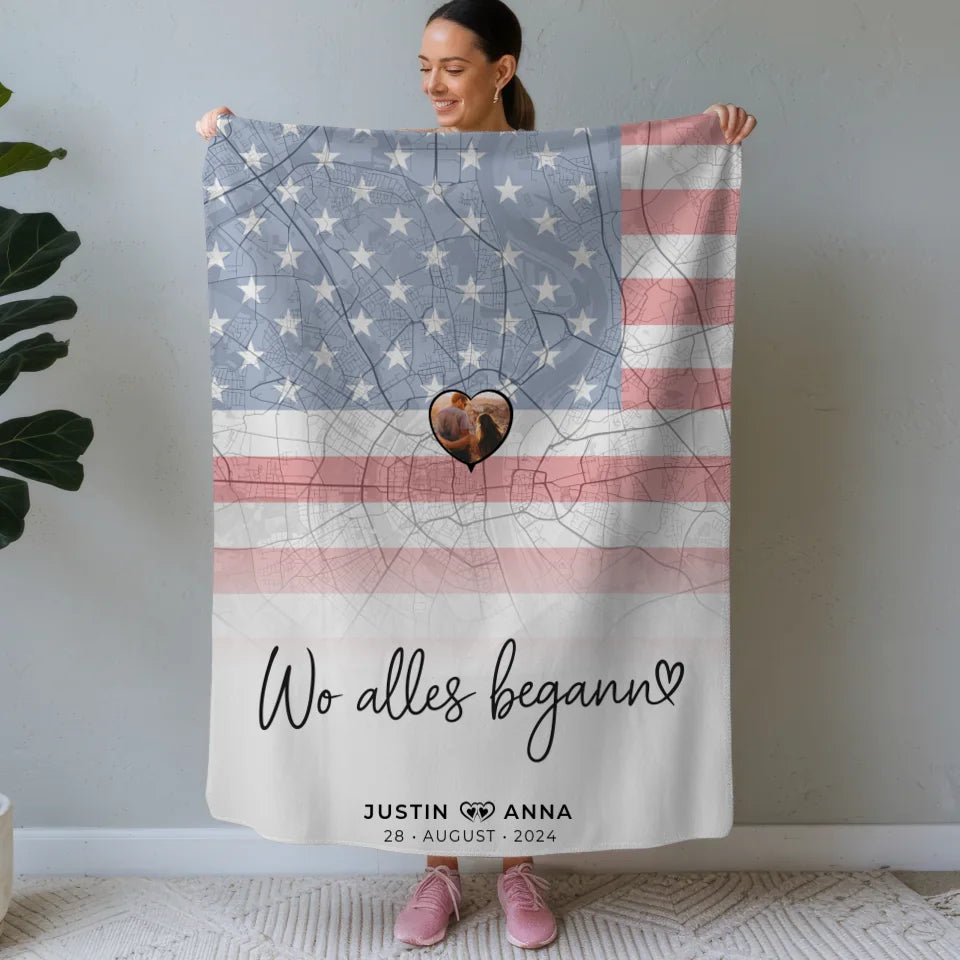 Personalisierte Decke Foto Stadtkarte Paare USA Wo Alles Begann