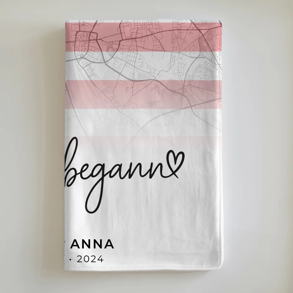 Mit dem wunderschönen Spruch 'Wo Alles Begann' wird diese Decke zu einem besonderen Highlight. Sie ist nicht nur dekorativ, sondern auch kuschelig und ideal für gemütliche Abende auf der Couch. Egal, ob Ihr einen romantischen Urlaub plant oder die bezaubernden Erinnerungen Eurer Liebe festhalten möchtet – diese Decke ist das perfekte Erinnerungsstück für Paare und ein tolles Geschenkelement.
