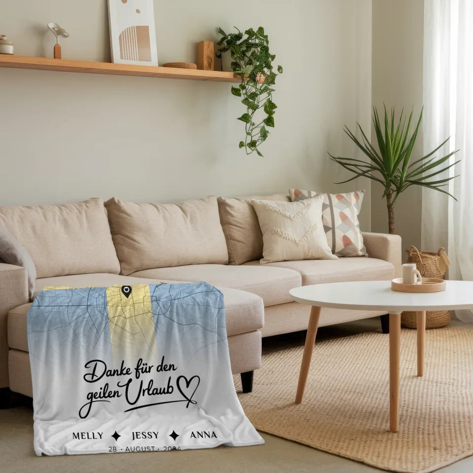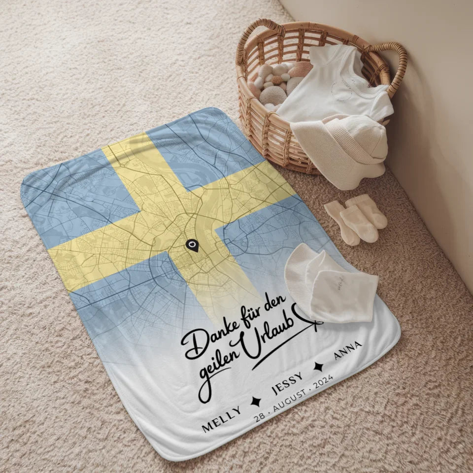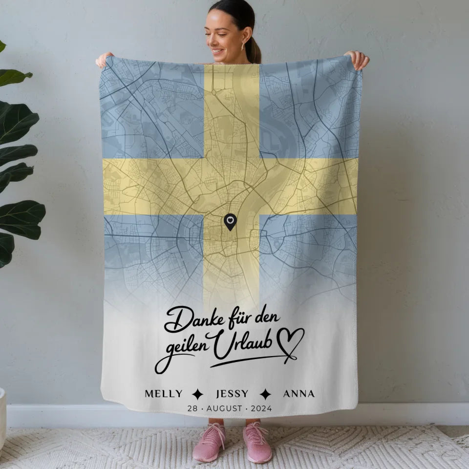 Personalisierte Decke für Freundinnen mit Stadtkarte aus Schweden Danke für den geilen Urlaub