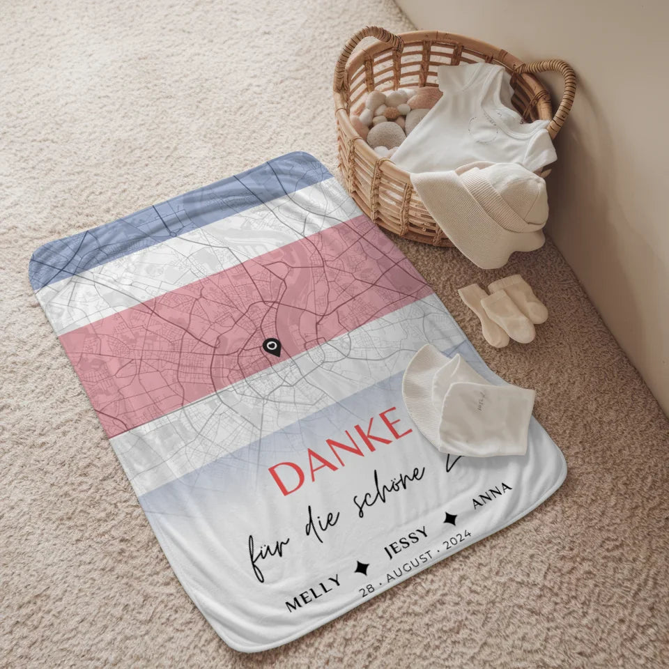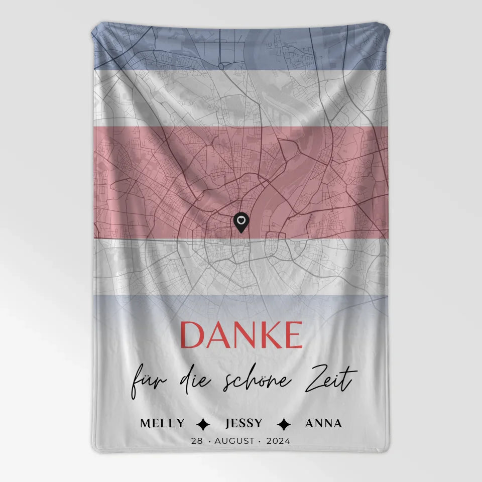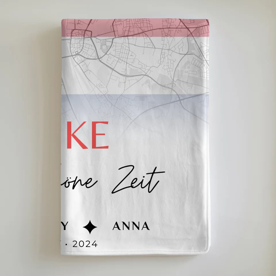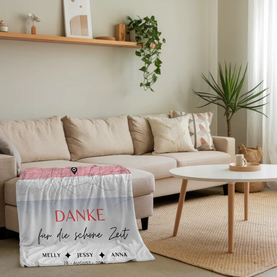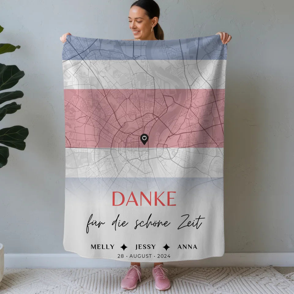 Personalisierte Decke für Freundinnen Stadtkarte Costa Rica Urlaub
