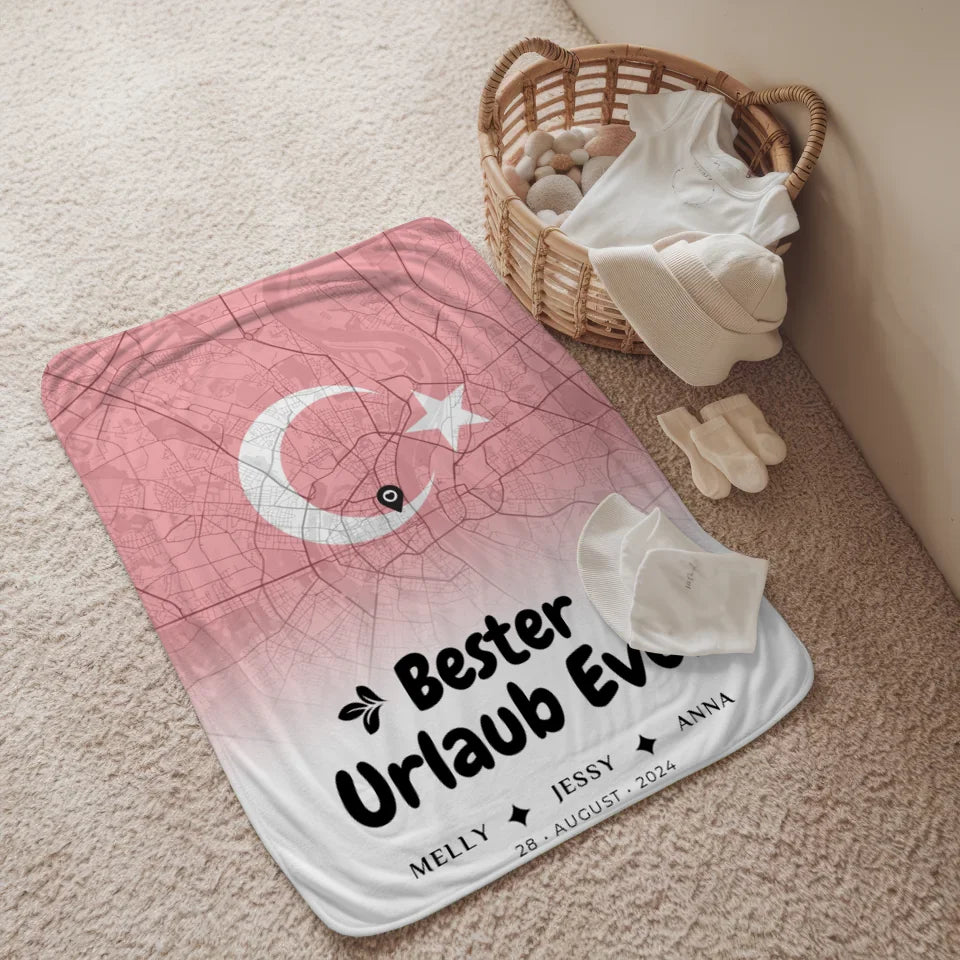 Personalisierte Decke für Freundinnen Stadtkarte Türkei Bester Urlaub Ever