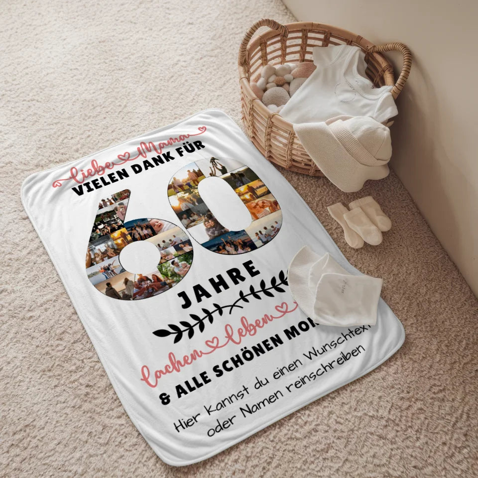 Personalisierte Decke für Mama zum 60. Geburtstag mit Fotos und Wunschtext