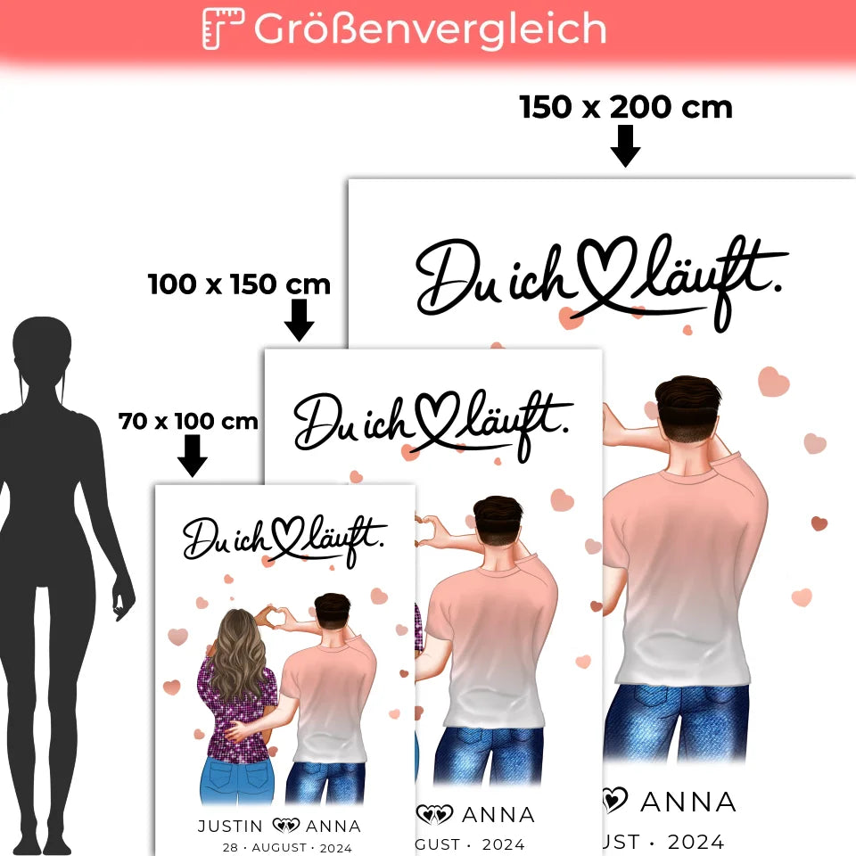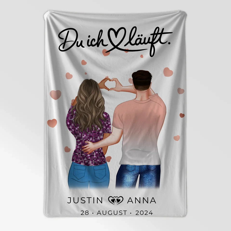Personalisierte Decke für Paare mit Figuren Du Ich Läuft