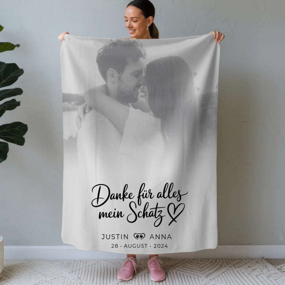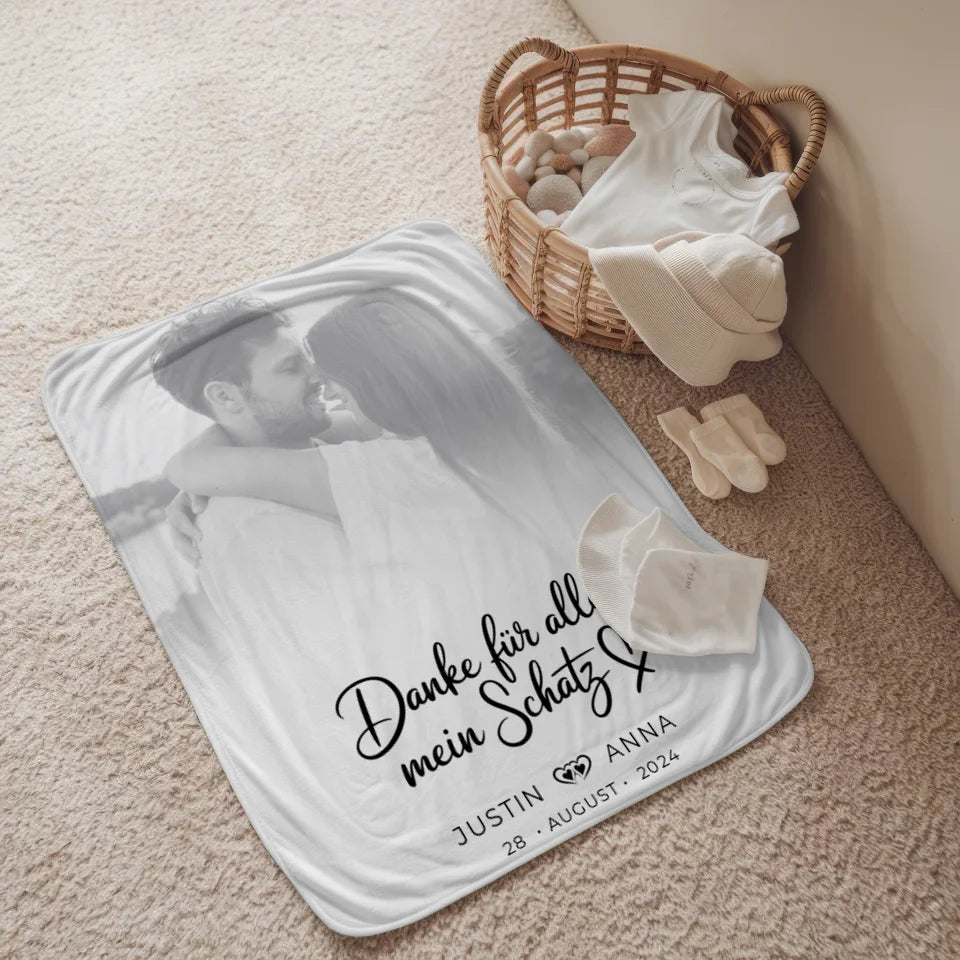 Personalisierte Decke für Paare mit Foto Black & White Danke Für Alles