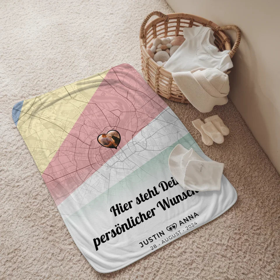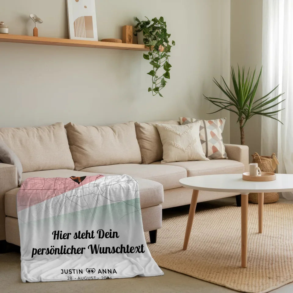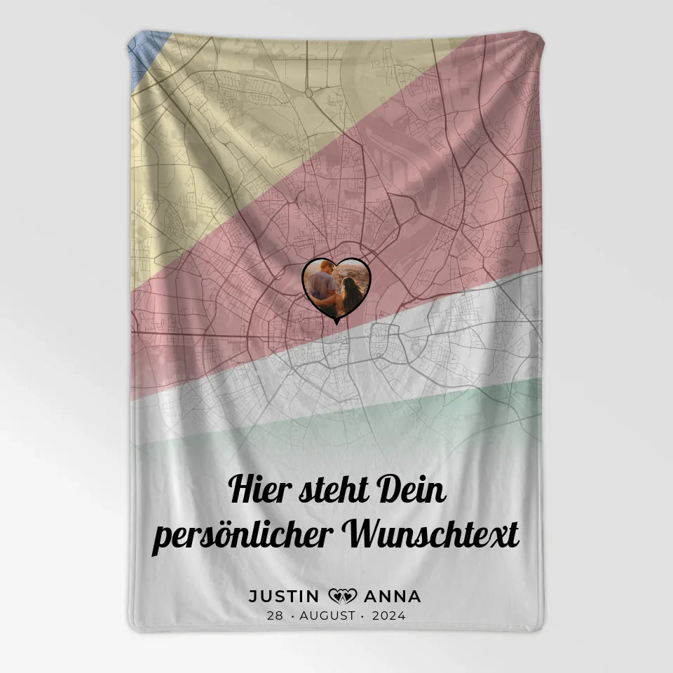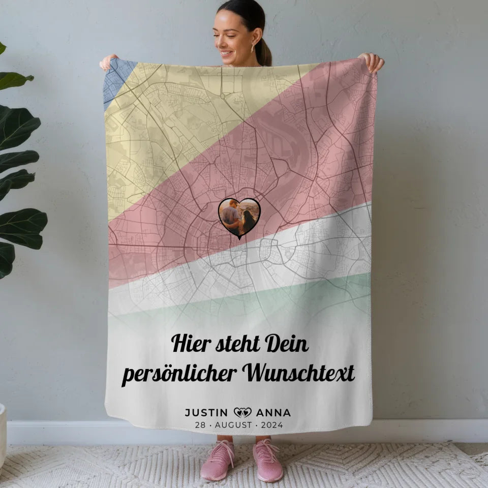 Personalisierte Decke für Paare mit Stadtkarte Seychellen und Foto
