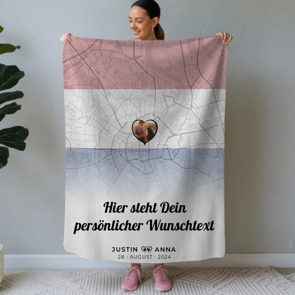 Personalisierte Decke für Paare mit Stadtkarte und Foto Niederlande