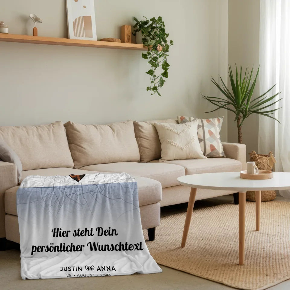 Diese Decke ist das ideale Geschenk für besondere Anlässe wie Valentinstag, Geburtstag oder Weihnachten. Überrasche deinen Partner oder deine Partnerin mit einer ganz persönlichen Decke, die nicht nur warm hält, sondern auch eure gemeinsame Geschichte erzählt. Die Kombination aus Stadtkarte und persönlichem Foto macht diese Decke zu einem Unikat, das jeden Raum gemütlicher gestaltet.