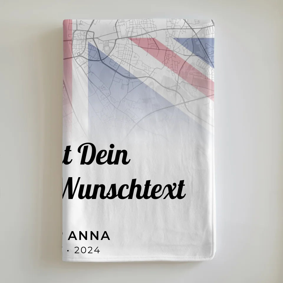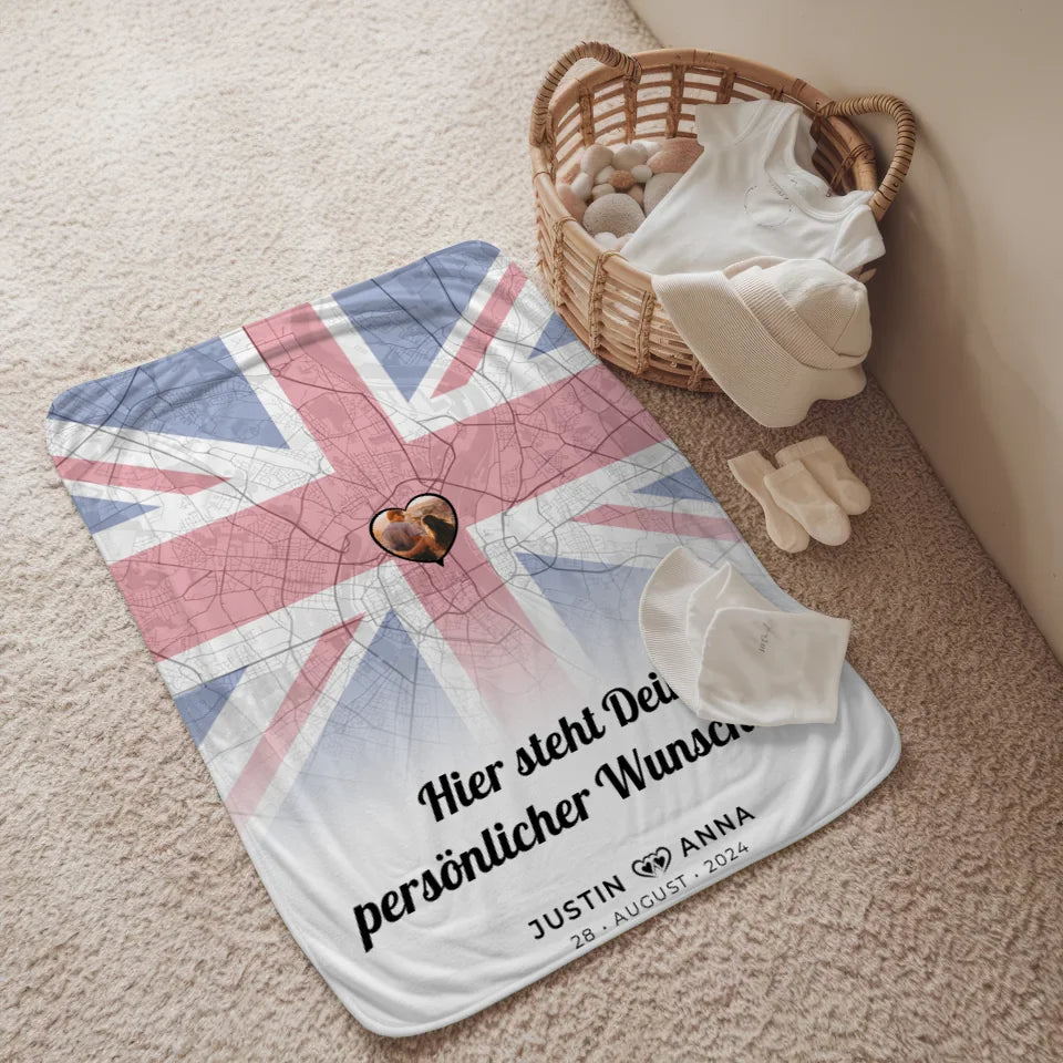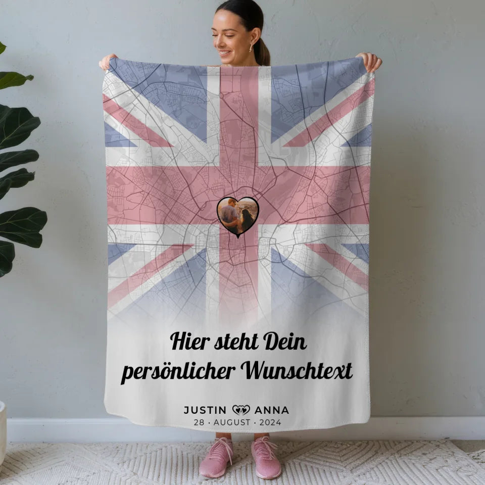 Personalisierte Decke für Paare Stadtkarte Foto England Wunschtext