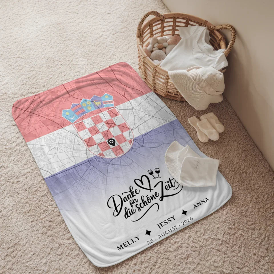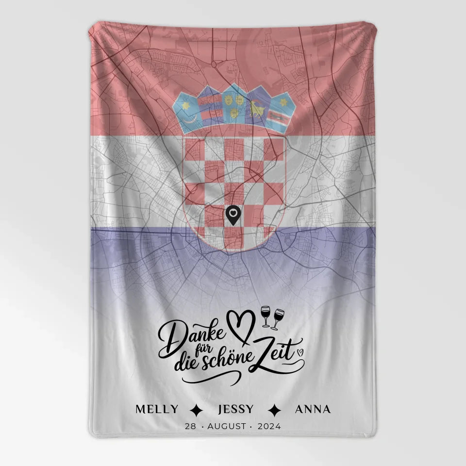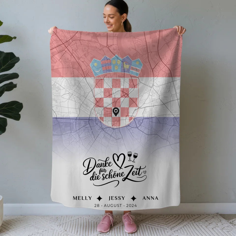 Personalisierte Decke für Schwester Stadtkarte Kroatien Danke Für Die Schöne Zeit