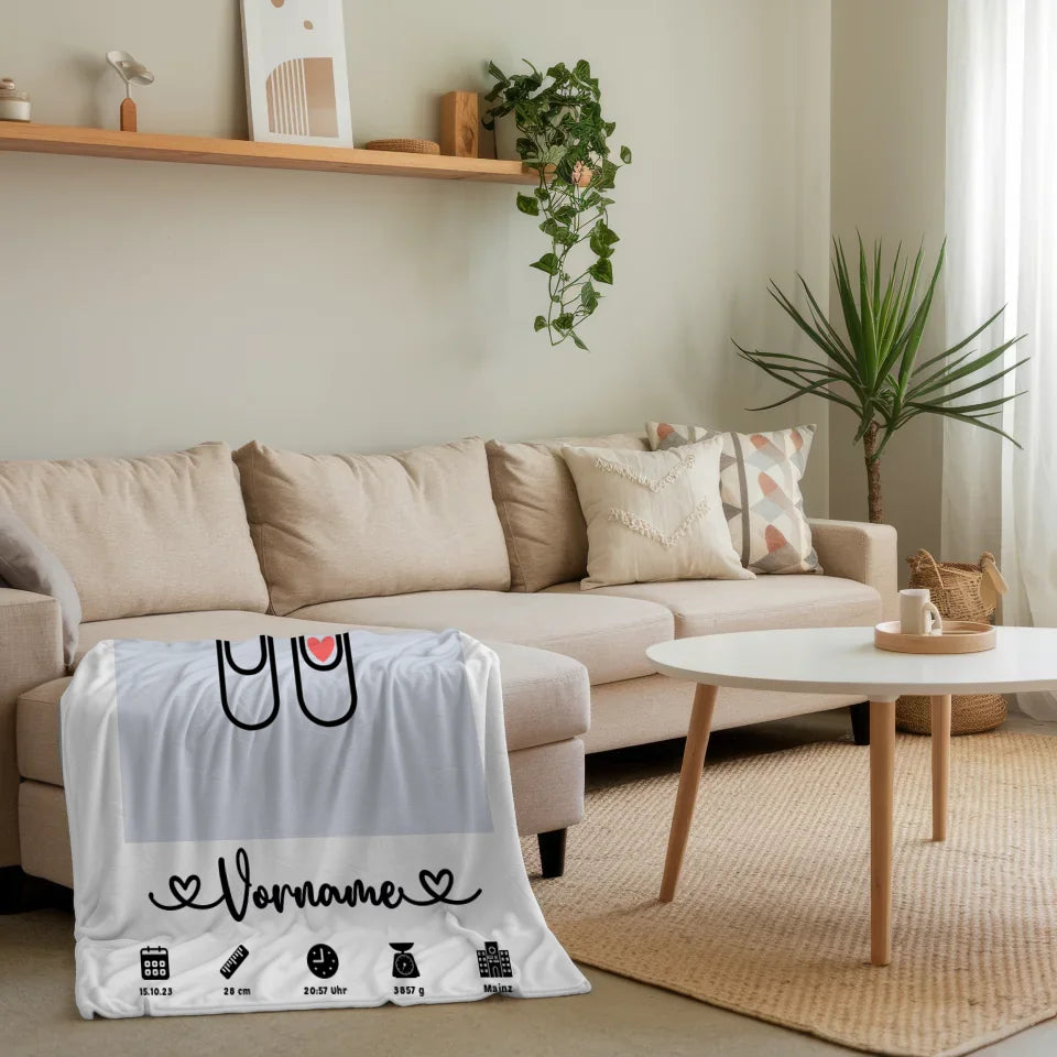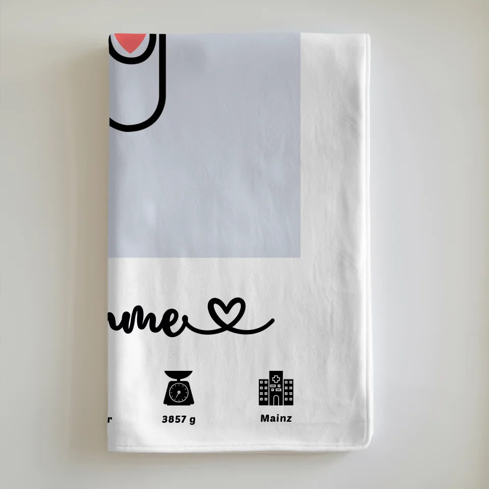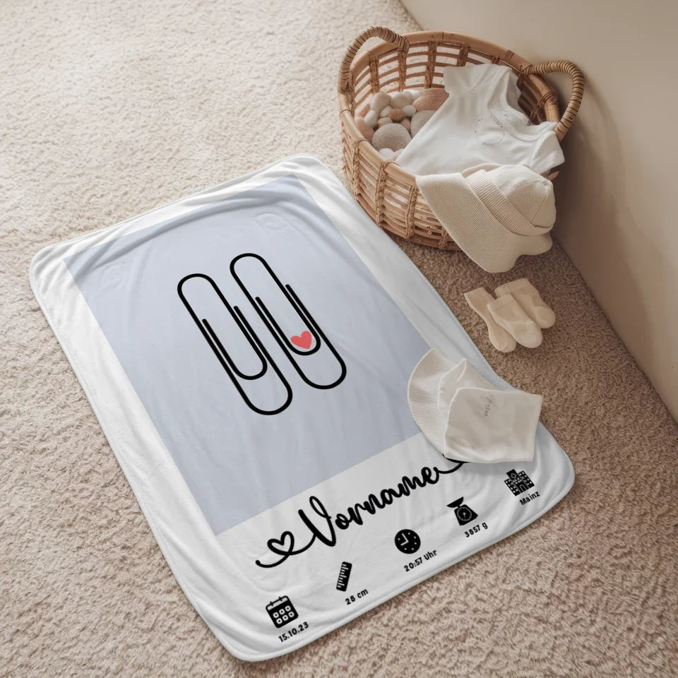 Entdecke unsere liebevoll gestaltete personalisierte Decke Geburt Capriblau für Kinderzimmer Klammern, die zu einem ganz besonderen Geschenk für dein Baby wird! Diese einzigartige Decke bietet nicht nur kuschelige Wärme, sondern auch die Möglichkeit, Erinnerungen für die Ewigkeit festzuhalten. Du kannst die Decke personalisieren, indem du wichtige Geburtsdaten wie Gewicht, Größe, Uhrzeit und Datum deines kleinen Wunderkindes sowie dessen Namen und ein passendes Hintergrundbild auswählst.