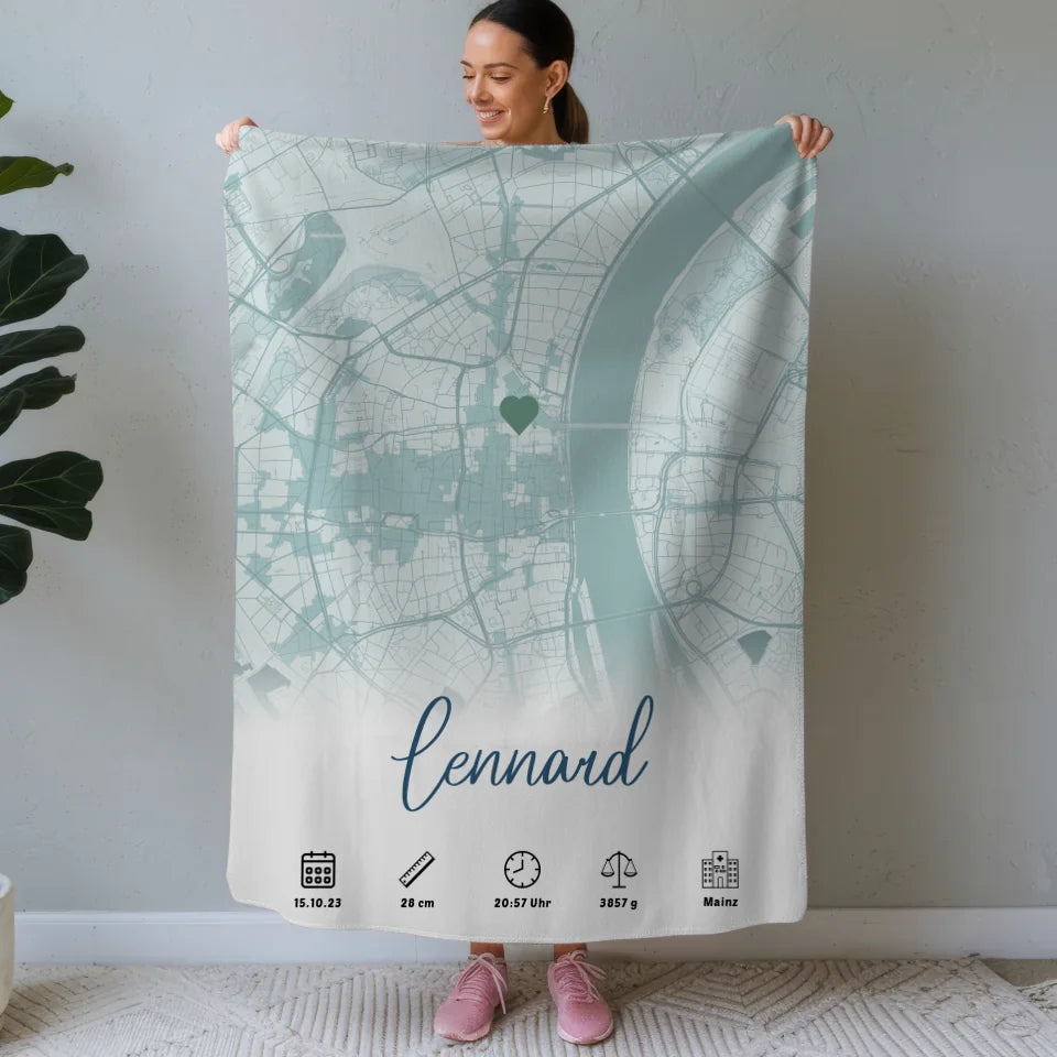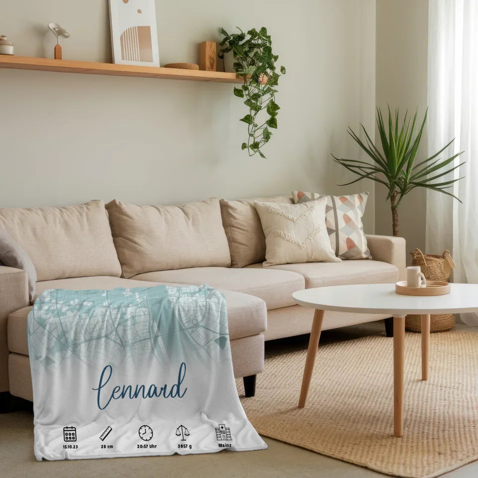 Personalisierte Decke Geburt Stadt Karte Geburtsdaten Blau Jungen Geschenke