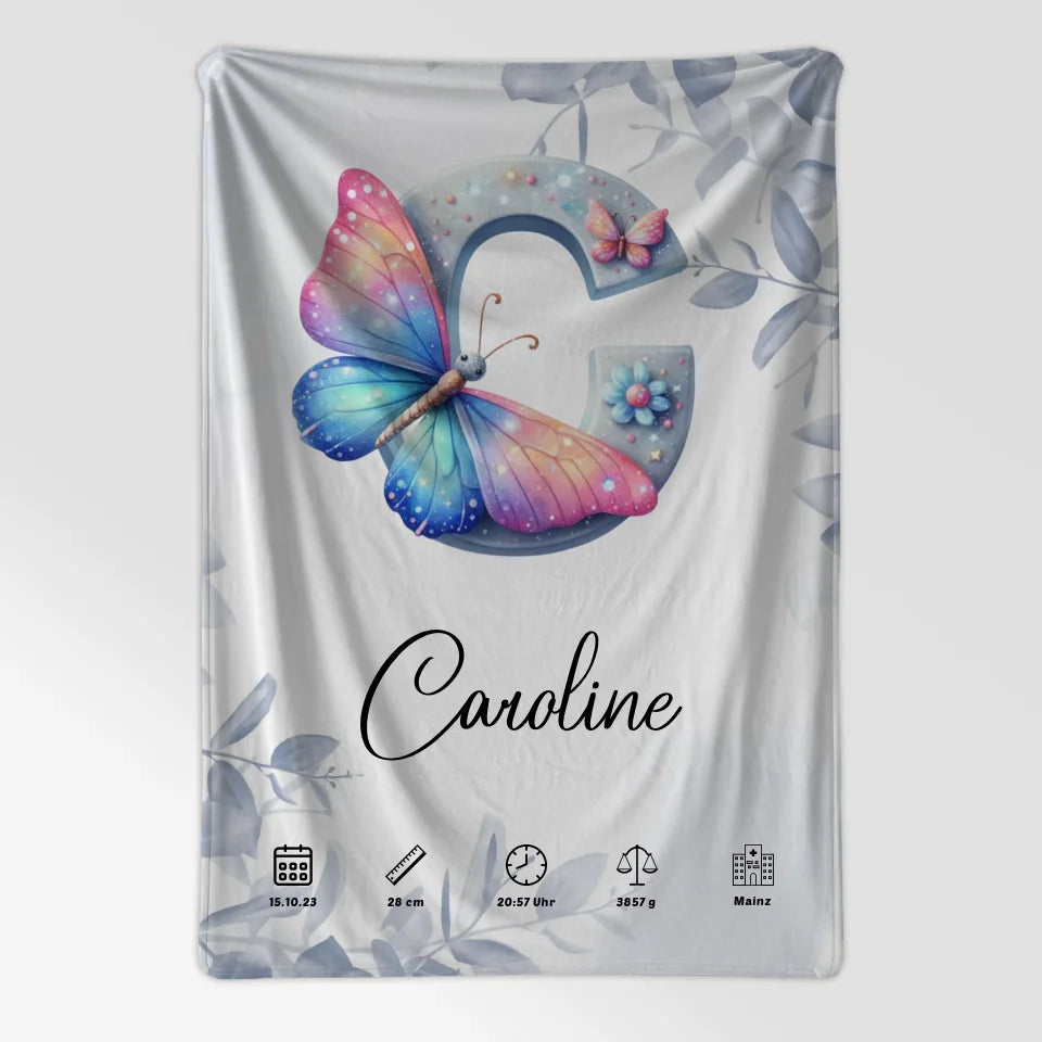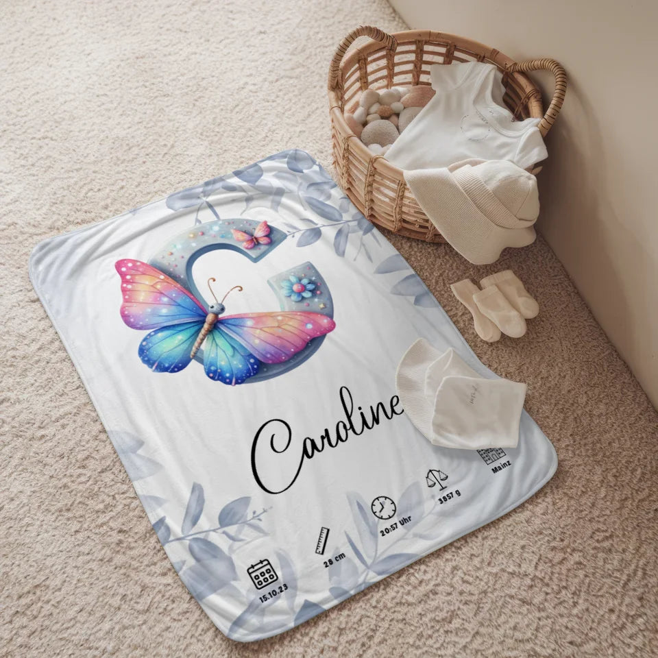 Personalisierte Decke mit Anfangsbuchstaben C Eucalyptus Blau Geburt