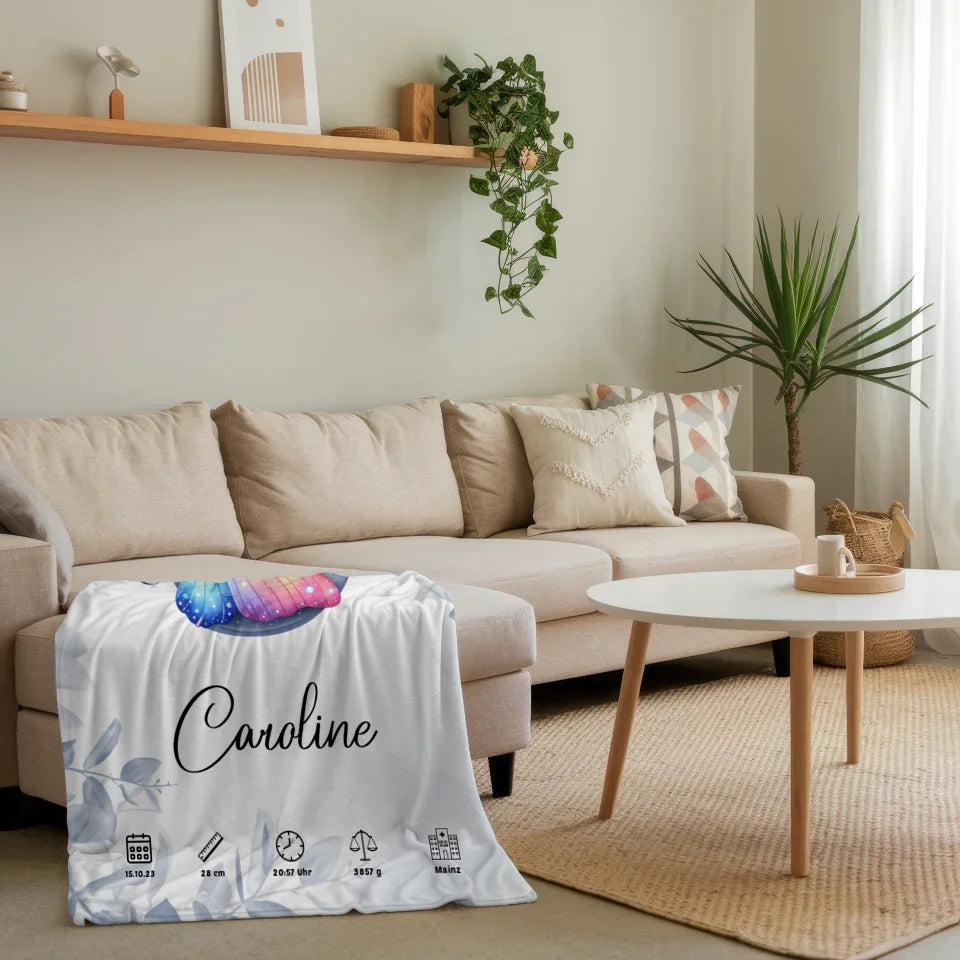 Entdecke die zauberhafte, personalisierte Decke mit Anfangsbuchstaben C in Eucalyptus Blau – das perfekte Geschenk zur Geburt oder zum Geburtstag! Diese exklusive Decke ermöglicht es dir, individuelle Geburtsdaten wie Gewicht, Größe, Uhrzeit und Datum, sowie den Initial-Buchstaben und den Namen des kleinen Erdenbürgers kreativ zu gestalten. Die Decke ist nicht nur ein wunderschönes Dekorationsstück, sondern schenkt auch Wärme und Geborgenheit für dein Baby. Jedes Detail wird nach deinen Wünschen angepasst, damit dieses Geschenk einzigartig wird. Ob als stilvolle Ergänzung im Kinderzimmer oder als liebevolle Erinnerung an den besonderen Tag der Geburt – die personalisierte Decke ist immer eine gute Wahl. Mit den Buchstaben A-Z kannst du deinem Geschenk eine ganz persönliche Note verleihen. Wähle die perfekte Decke in Eucalyptus Blau für unvergessliche Momente und liebevolle Erinnerungen!