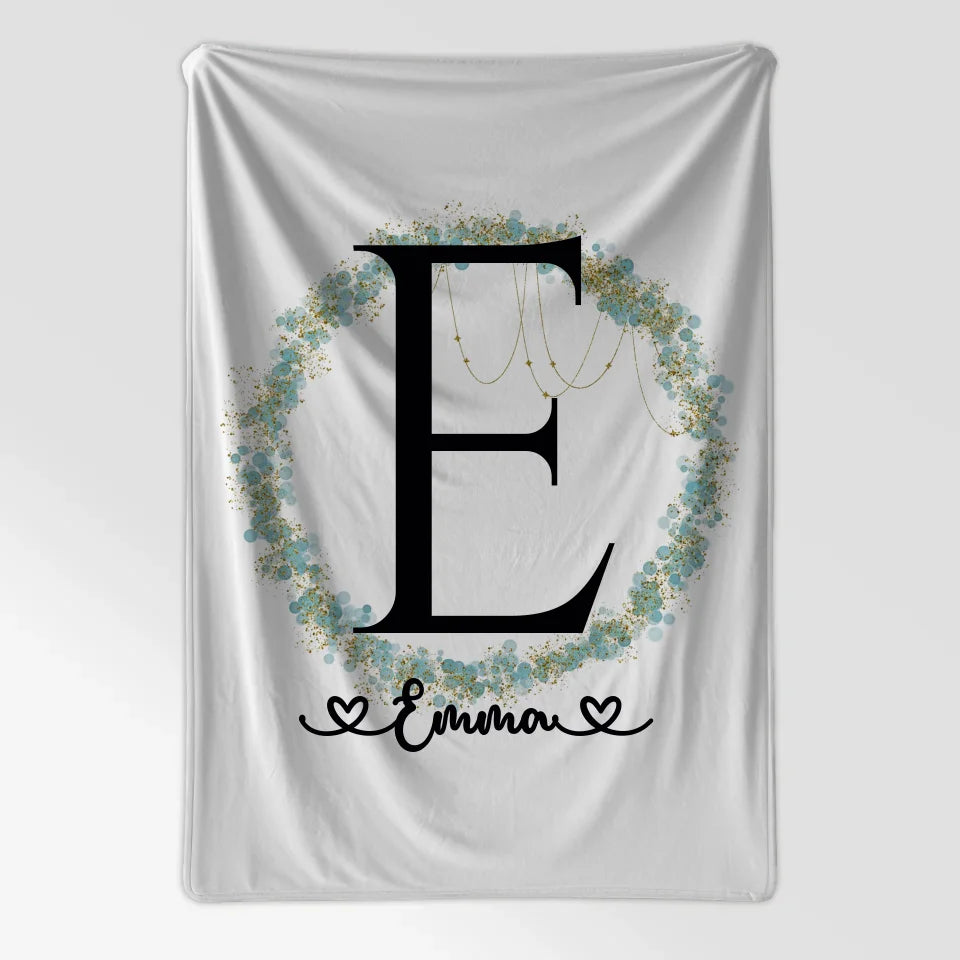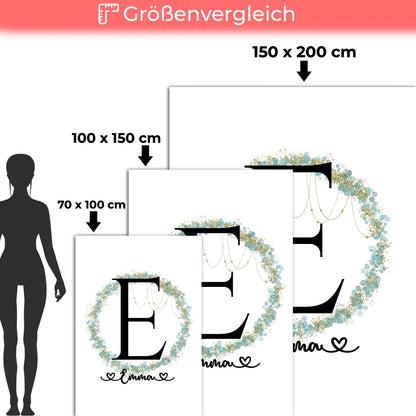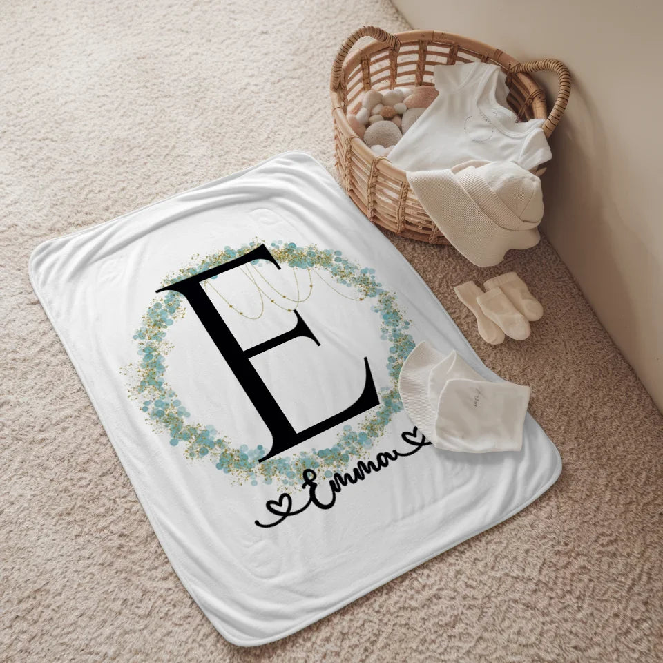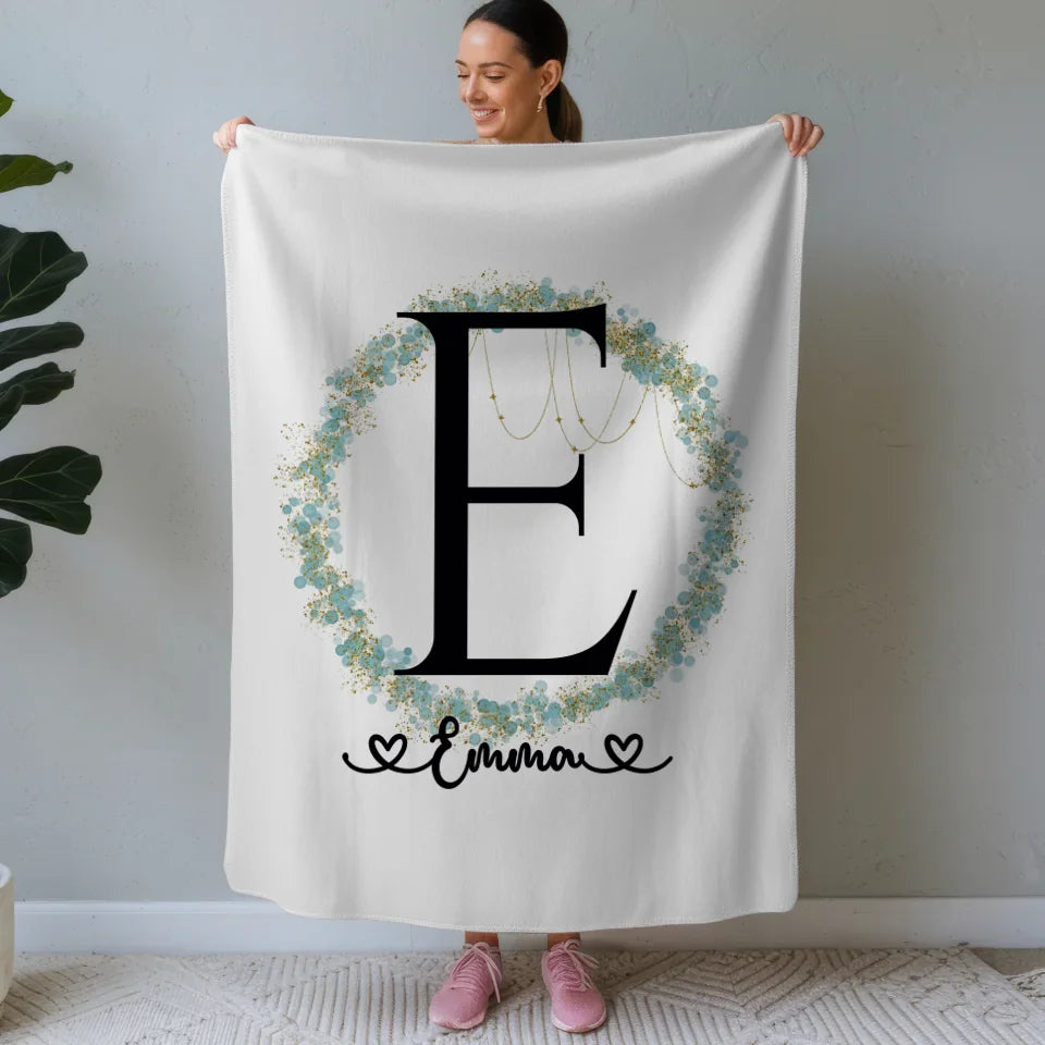 Personalisierte Decke mit Anfangsbuchstaben E und Blätter Kranz A-Z