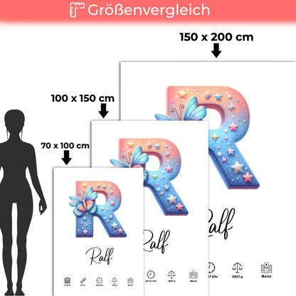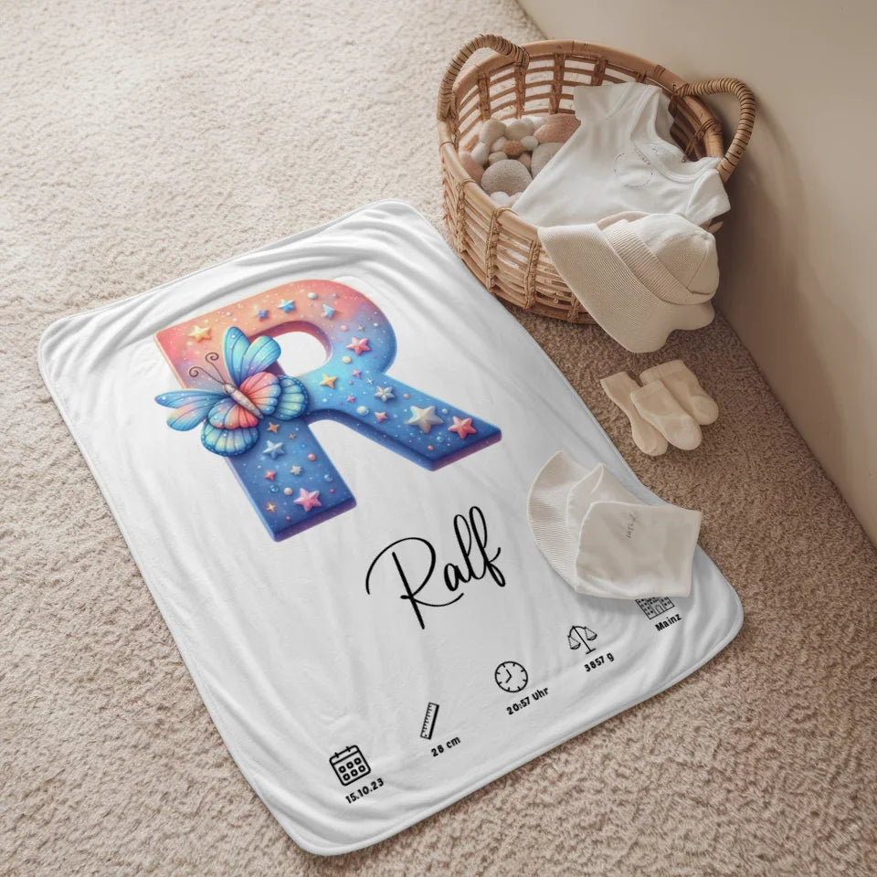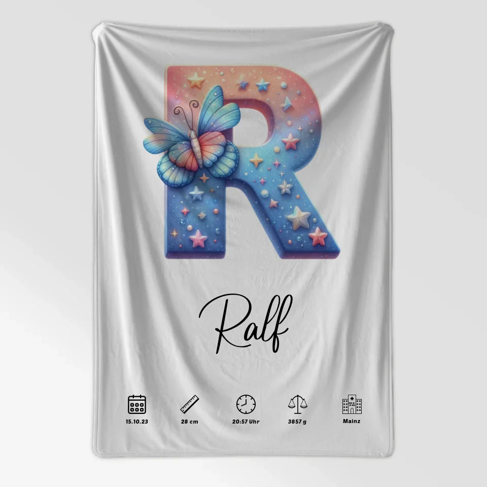 Personalisierte Decke mit Anfangsbuchstaben R und Buchstaben A-Z