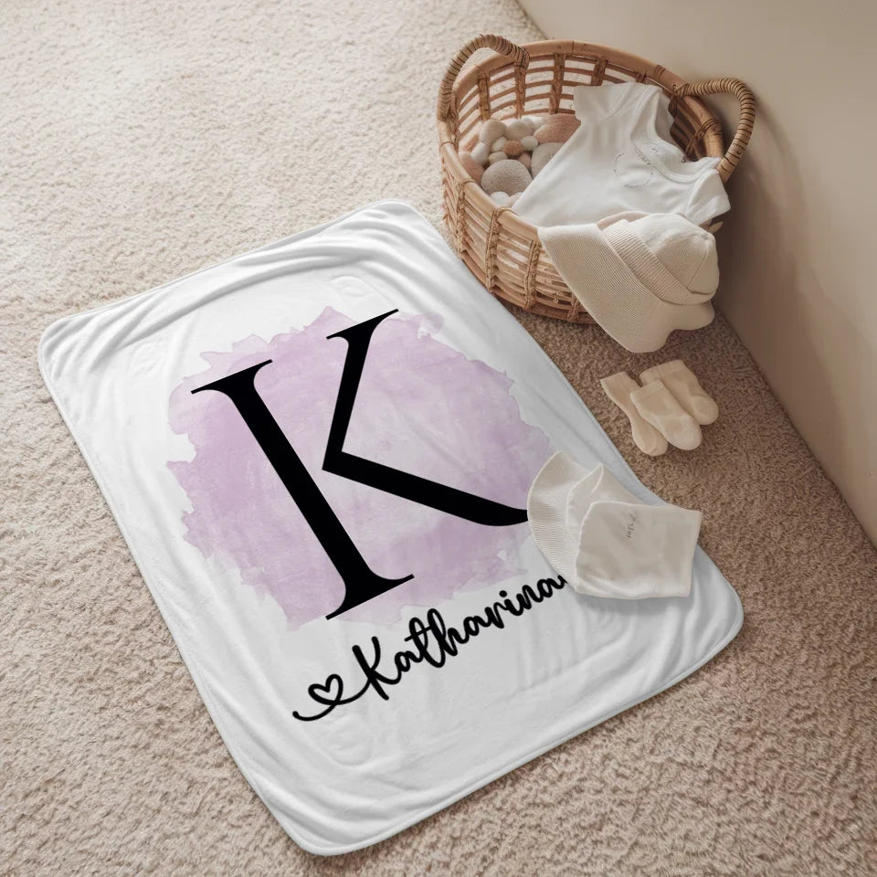 Entdecke die personalisierte Decke mit Buchstabe K und Pinsel Klecks Pink A-Z