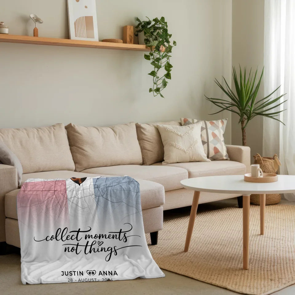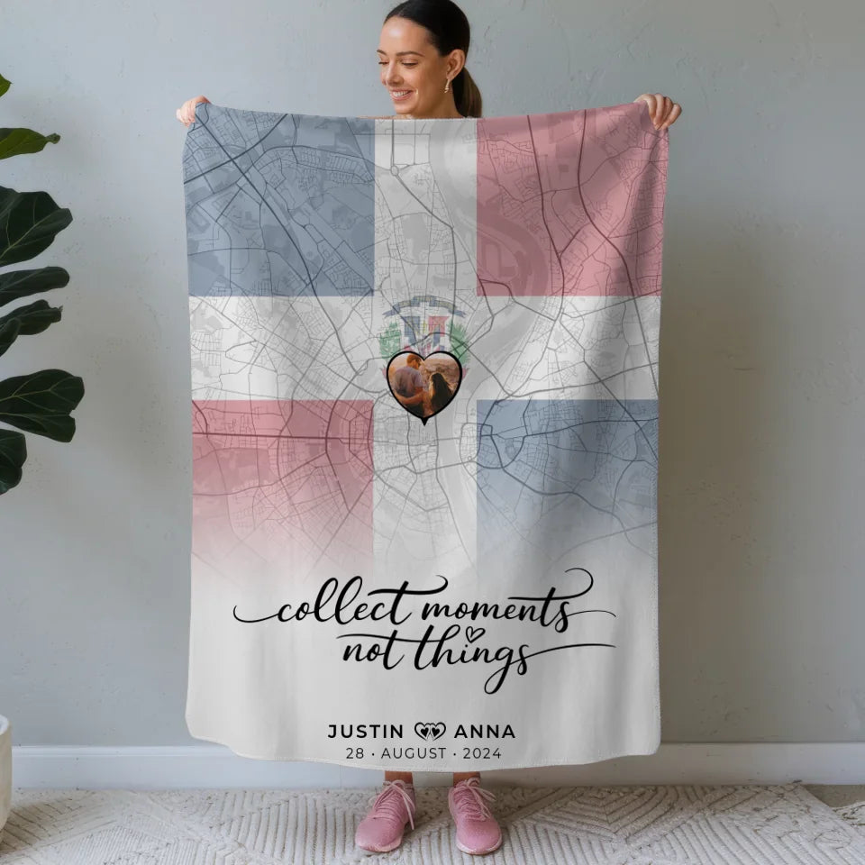 Mache deine Geschenke unvergesslich mit unserer personalisierte Decke mit Foto Stadtkarte Dominikanische Republik. Diese einzigartige Decke ist mehr als nur ein gemütlicher Begleiter – sie erzählt deine persönliche Geschichte! Gestalte sie mit einem besonderen Foto, markiere deinen Lieblingsort auf der Stadtkarte der Dominikanischen Republik, füge deinen Namen und einen individuellen Spruch oder Wunschtext hinzu. Ideal für Paare oder als Geschenk für Freunde und Familie, ist diese Decke ein Hit zu Anlässen wie Valentinstag, Geburtstag oder Weihnachten. Das liebevoll designte Motto 'Collect Moments Not Things' erinnert dich daran, dass die gemeinsamen Erlebnisse das Wertvollste sind. Verschenke ein Stück Erinnerung, das Wärme und Freude bringt – perfekt, um die schönsten Urlaub-Momente festzuhalten. Sichere dir jetzt deine personalisierte Decke und zaubere ein Lächeln auf das Gesicht deiner Liebsten!