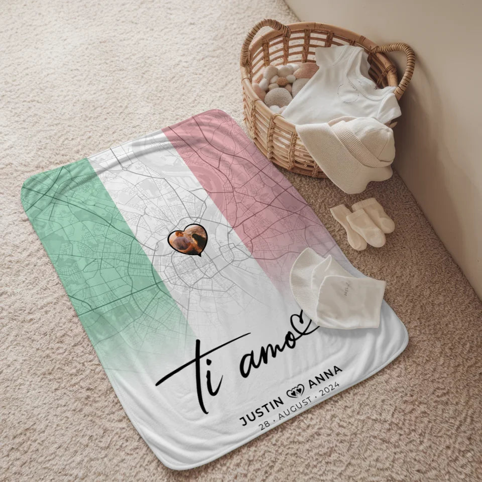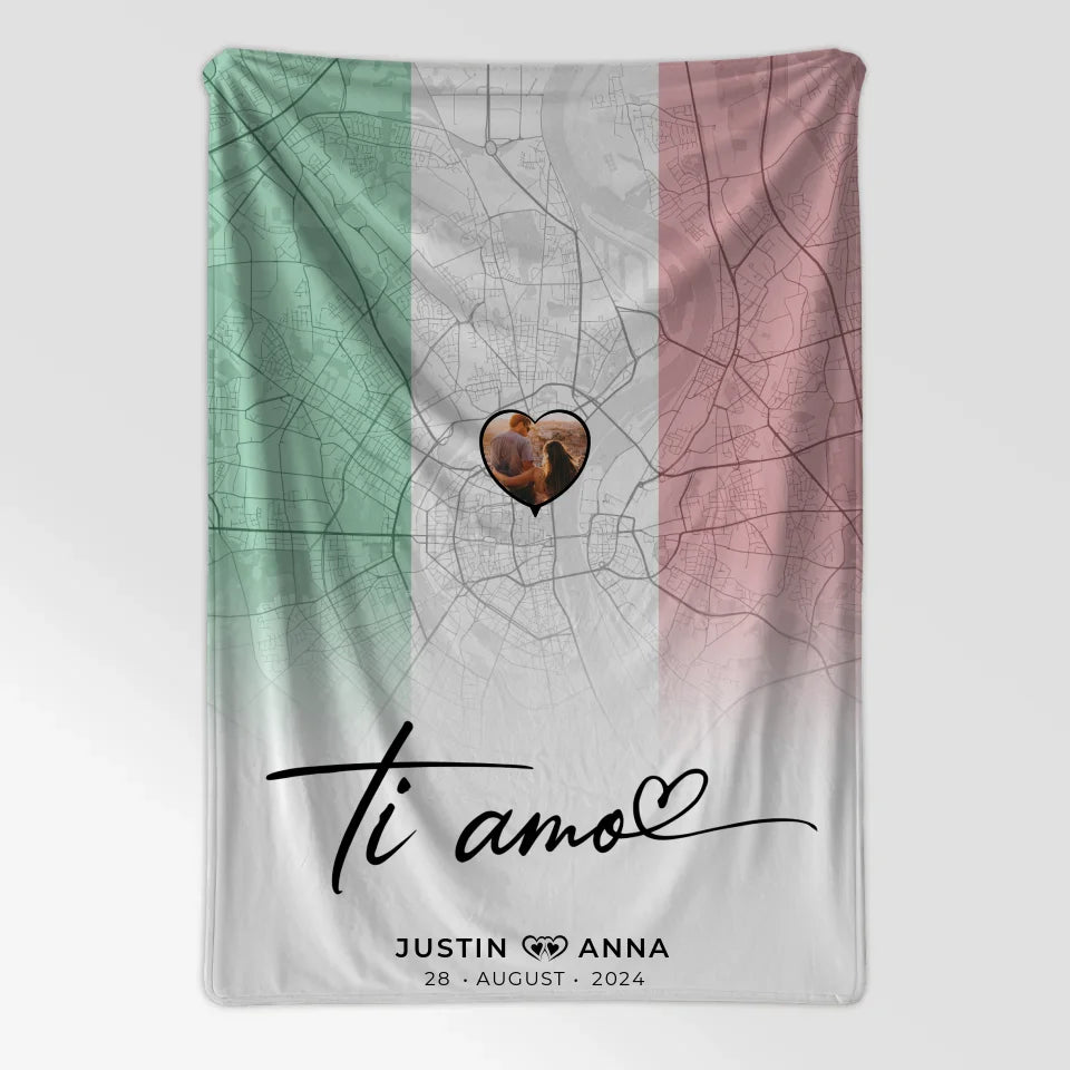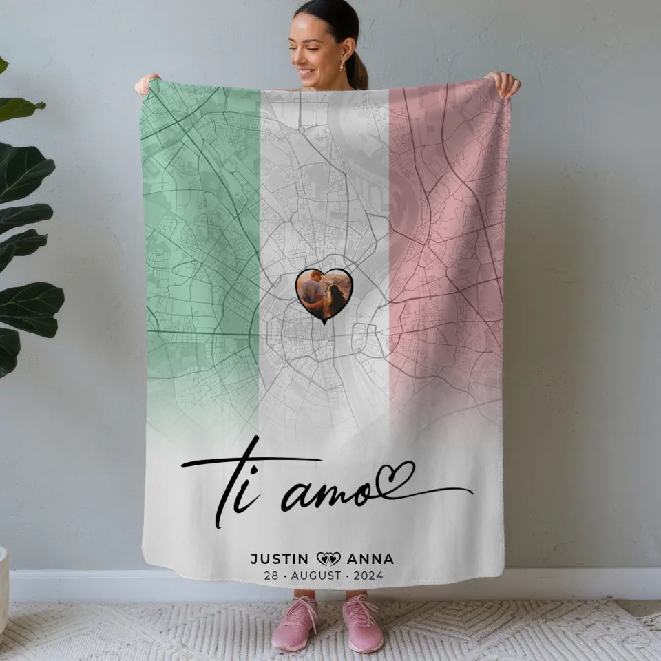 Personalisierte Decke mit Foto Stadtkarte Italien Ti Amo für Paare
