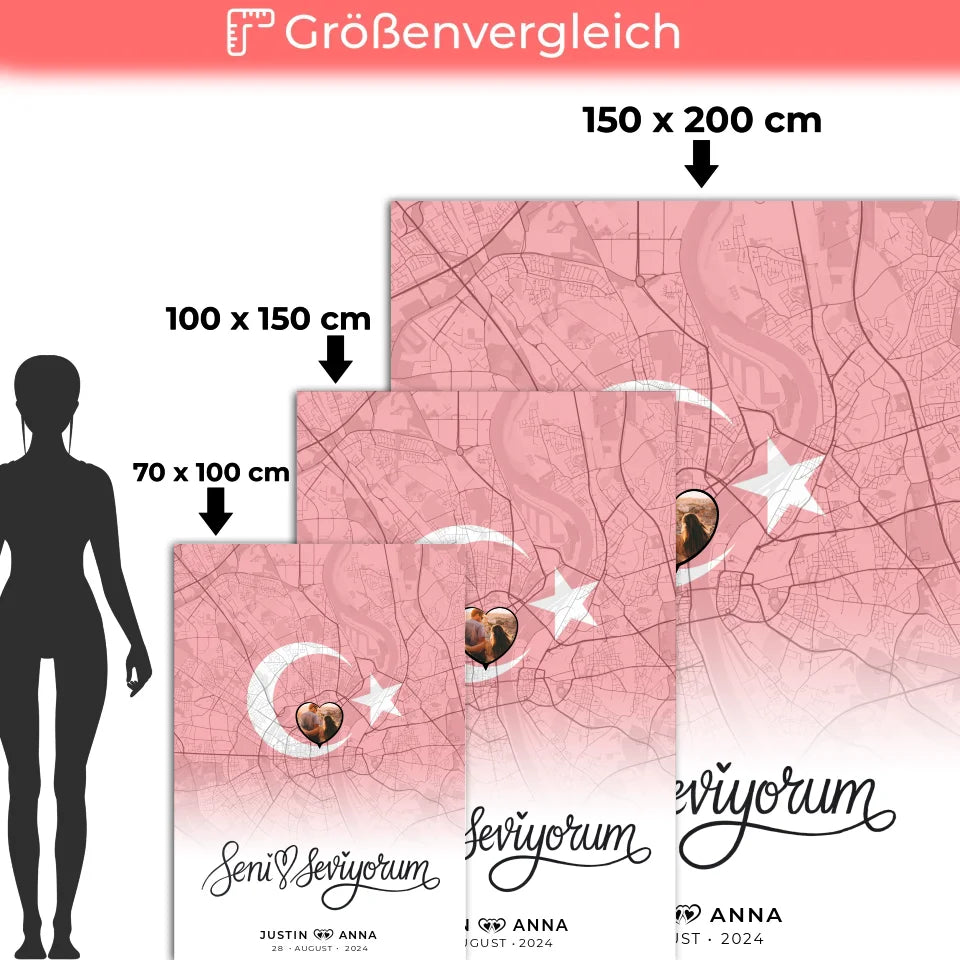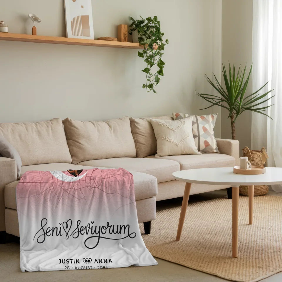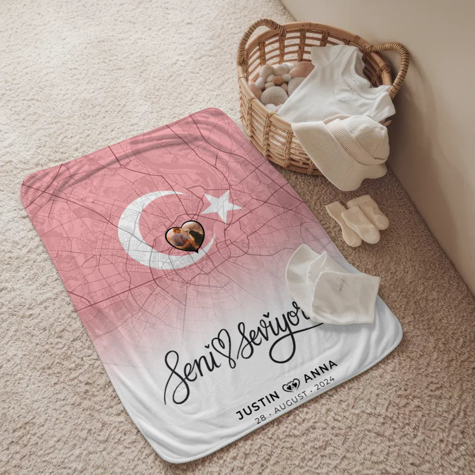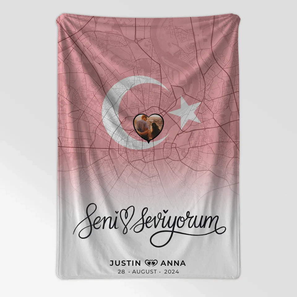 Personalisierte Decke mit Foto Stadtkarte Türkei Seni Seviyorum