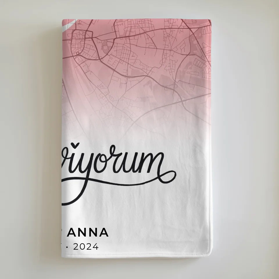 Warte nicht länger und gestalte noch heute Deine personalisierte Decke mit Foto Stadtkarte Türkei Seni Seviyorum! Ein Geschenk, das Wärme und Liebe verbreitet.