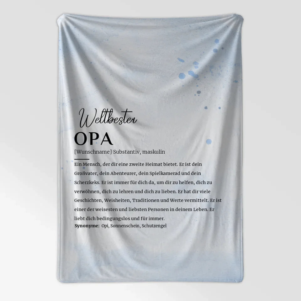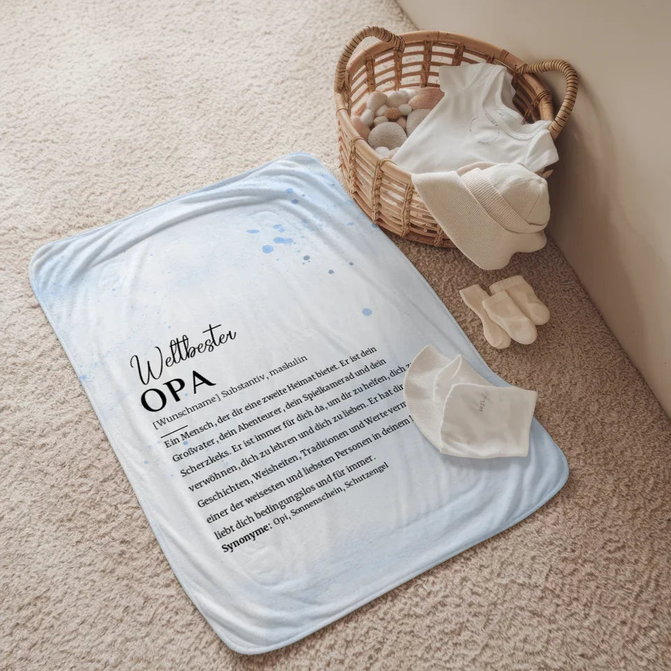 Personalisierte Decke mit Name Definition Opa Farbspritzer Blau