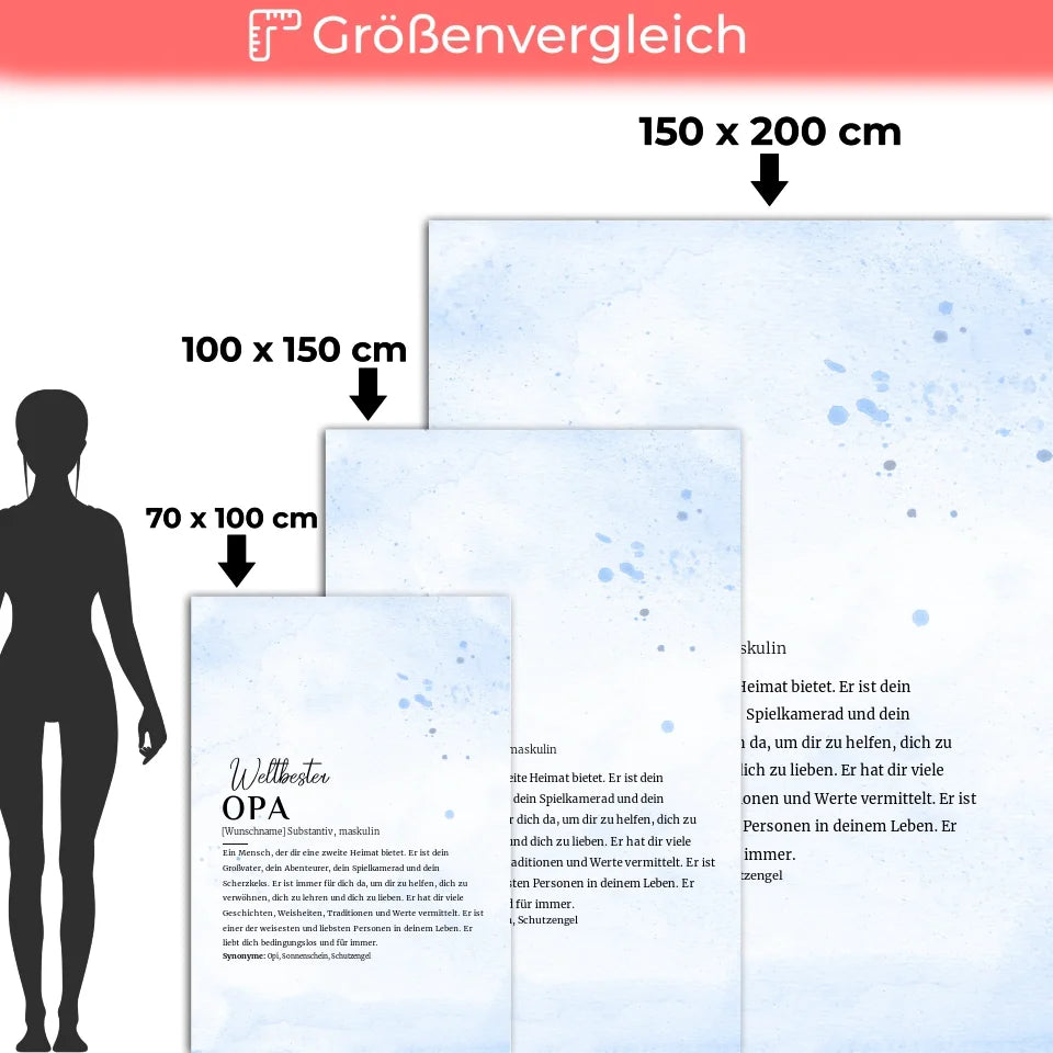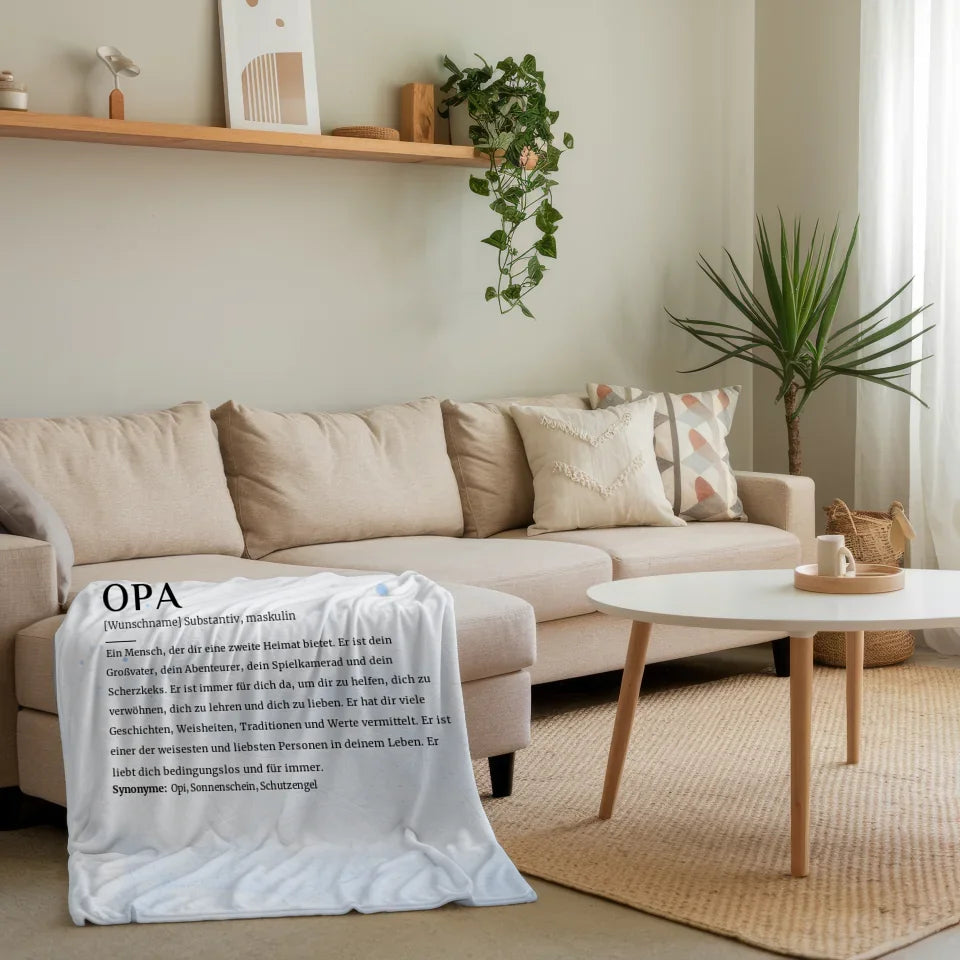 Diese personalisiert Decke mit der Definition Opa ist nicht nur ein tolles Wohnaccessoire, sondern auch ein kuscheliger Begleiter, der an kalten Tagen für wohlige Wärme sorgt. Mach die nächste Feier unvergesslich mit diesem durchdachten Geschenk, das garantiert ein Lächeln auf das Gesicht deines Opas zaubert!