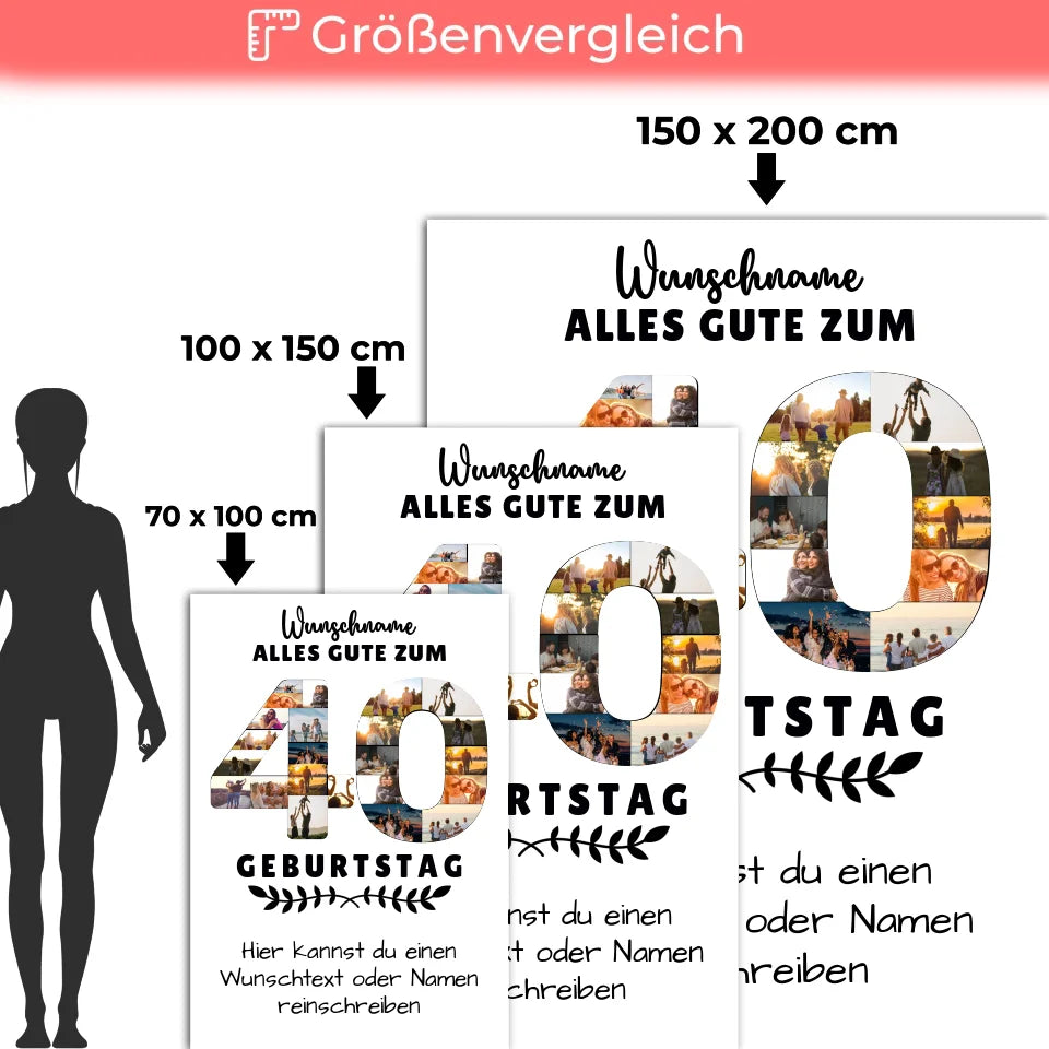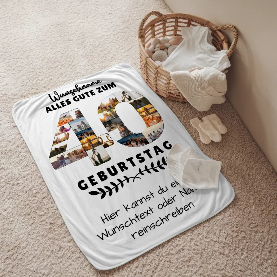 Feiere den 40. Geburtstag auf besondere Art und Weise mit unserer personalisierten Decke, die du ganz nach deinen Wünschen gestalten kannst. Diese einzigartige Decke ist das perfekte Geschenk für Mama, Papa oder jeden anderen besonderen Menschen in deinem Leben. Mit der personalisierten Decke kannst du über 20+ Fotos einfügen, die wertvolle Erinnerungen festhalten. Darüber hinaus kannst du einen eigenen Spruch oder Wunschtext hinzufügen, um deine persönlichen Gedanken zu teilen.
