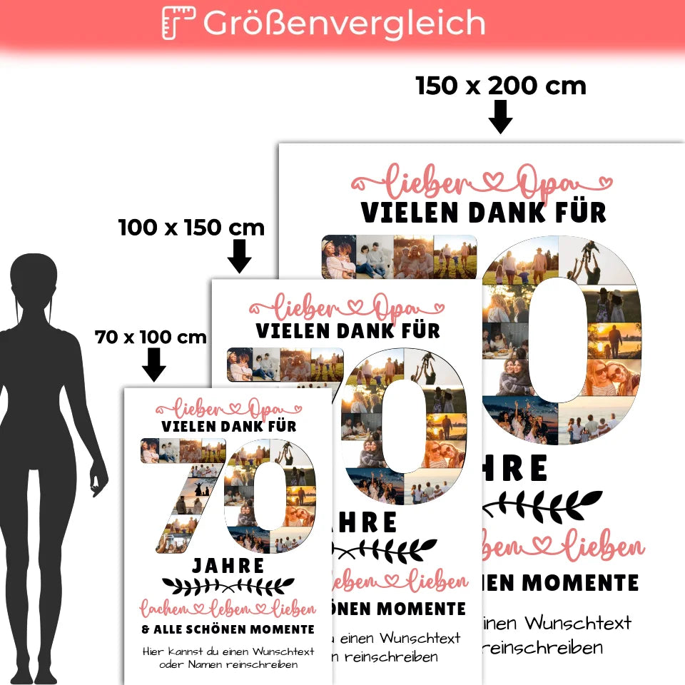 Personalisierte Decke Opa 70 Geburtstag Wunschtext Fotos Vielen Dank