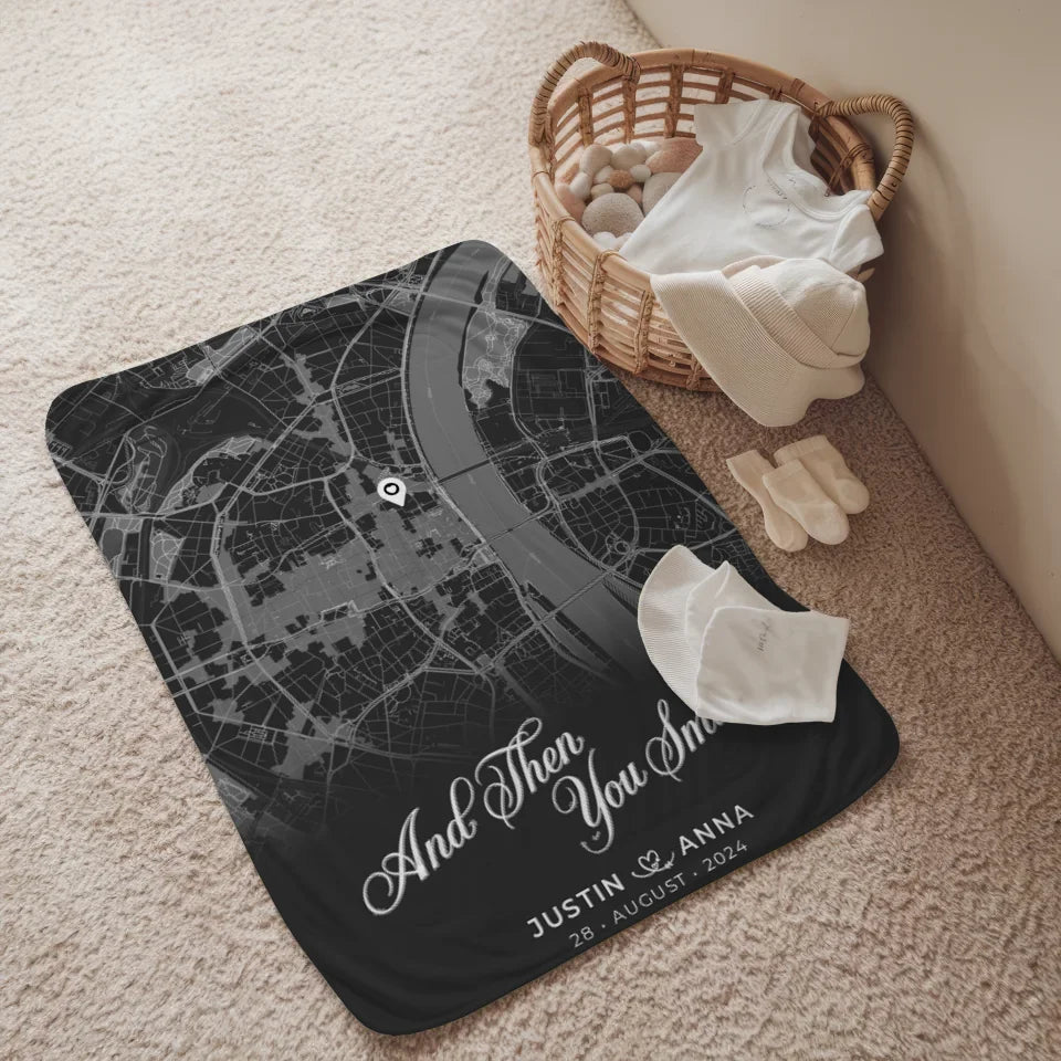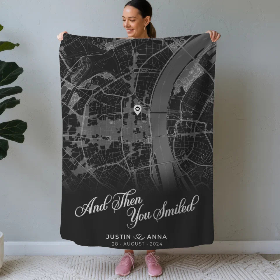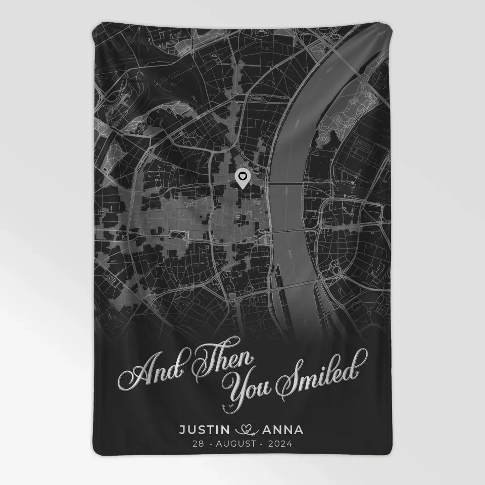 Mache unvergessliche Erinnerungen mit dieser liebevoll gestalteten Geschenkidee. Im Handumdrehen wird die personalisierte Decke Paare Dunkelgrau Stadtkarte All Of Me zu einem besonderen Highlight in deinem Zuhause oder dem deiner Liebsten!