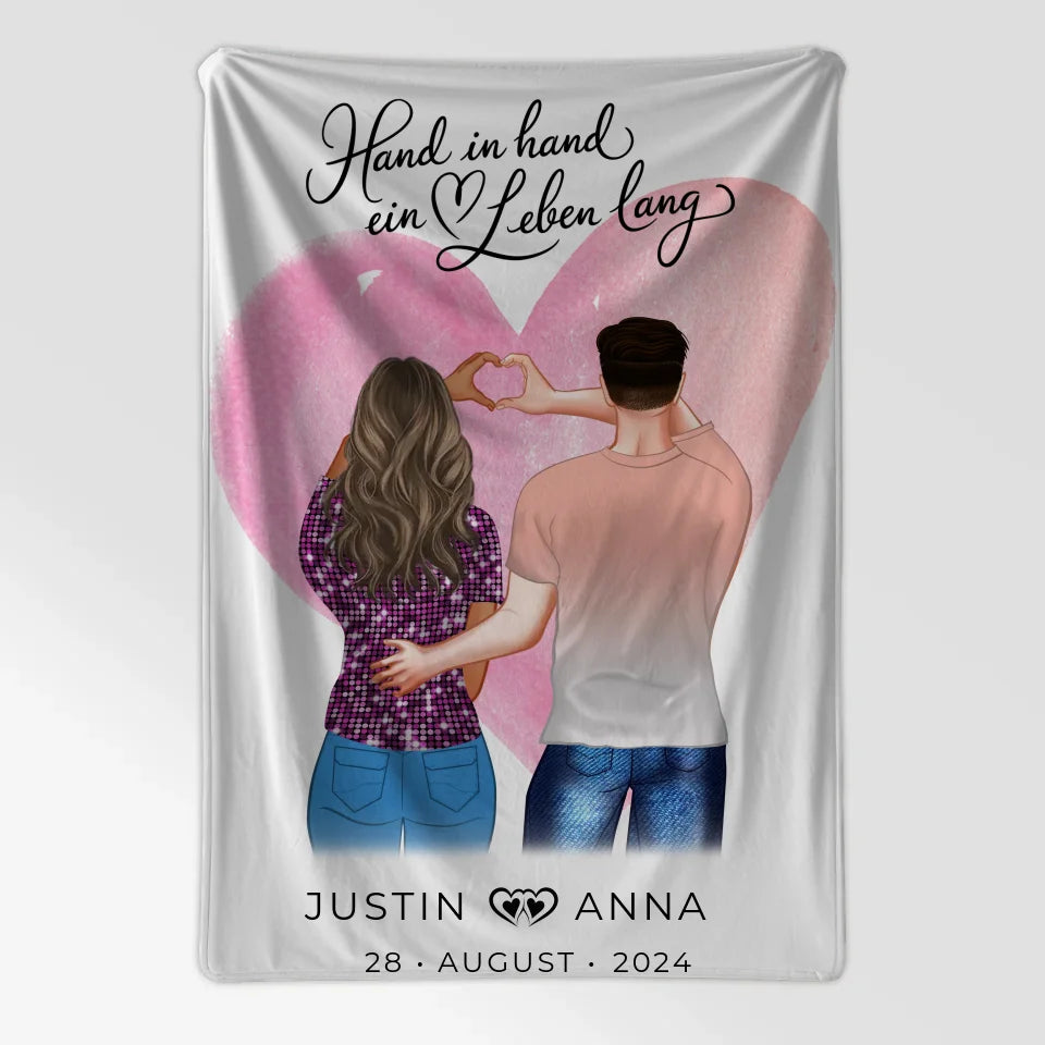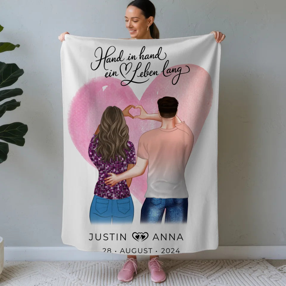 Personalisierte Decke Paare Figuren Hand In Hand Ein Leben Lang Verliebte mit Namen