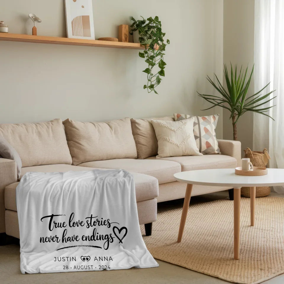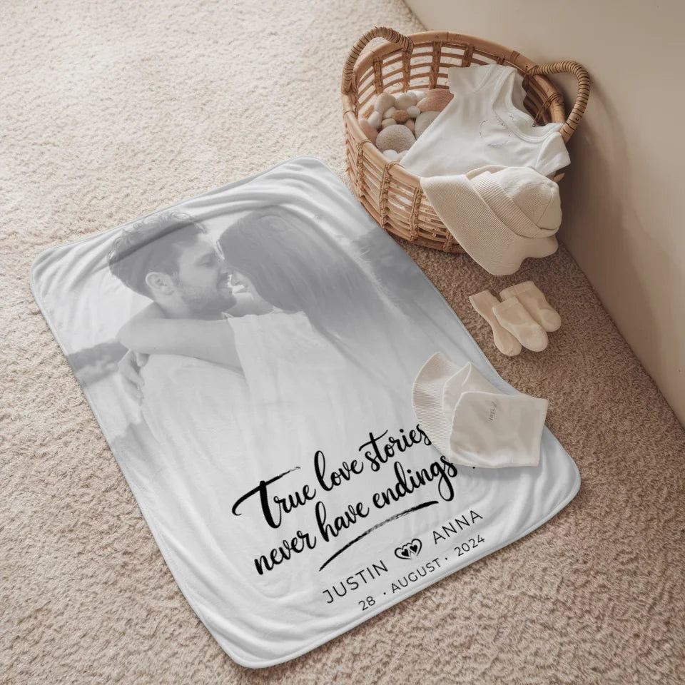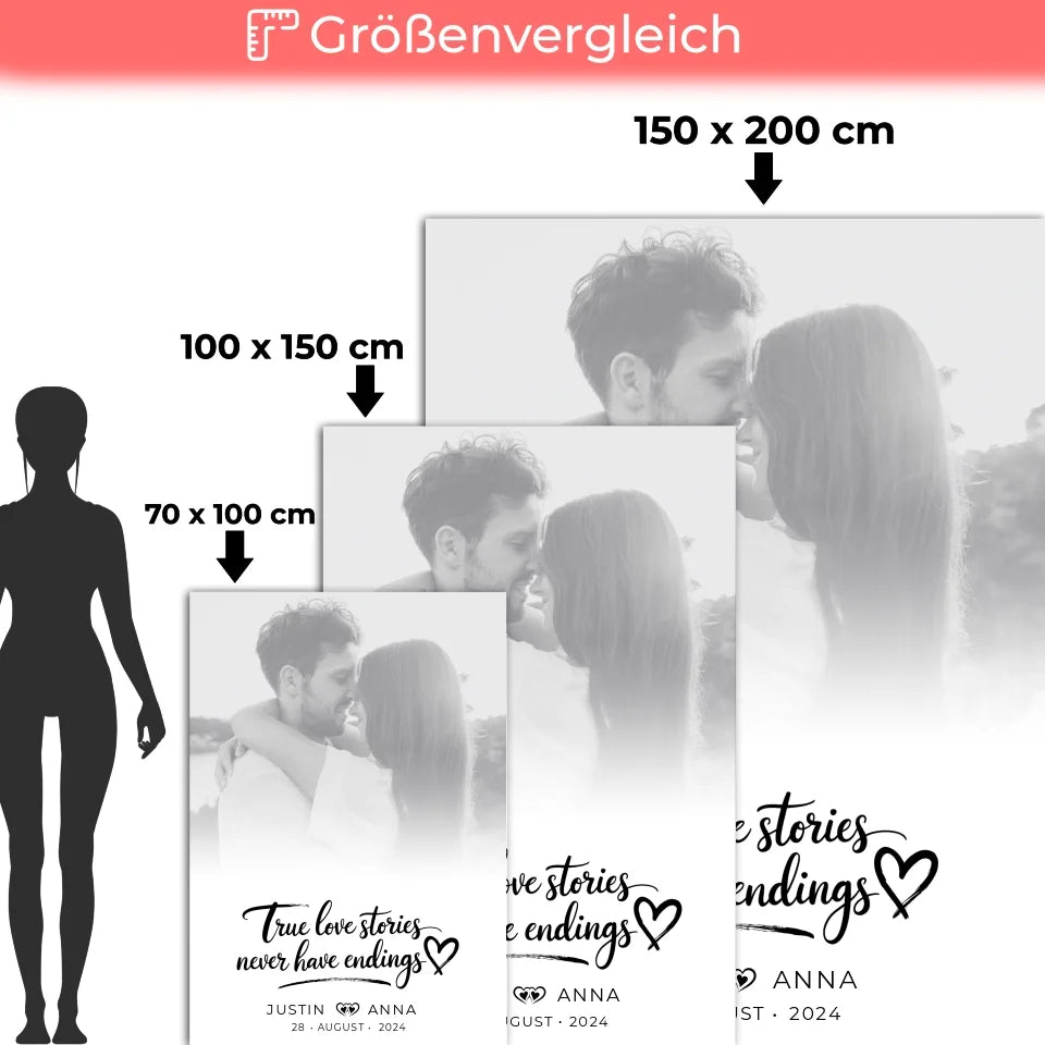 Personalisierte Decke Paare Foto Black & White True Love Stories mit Namen