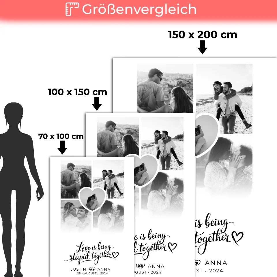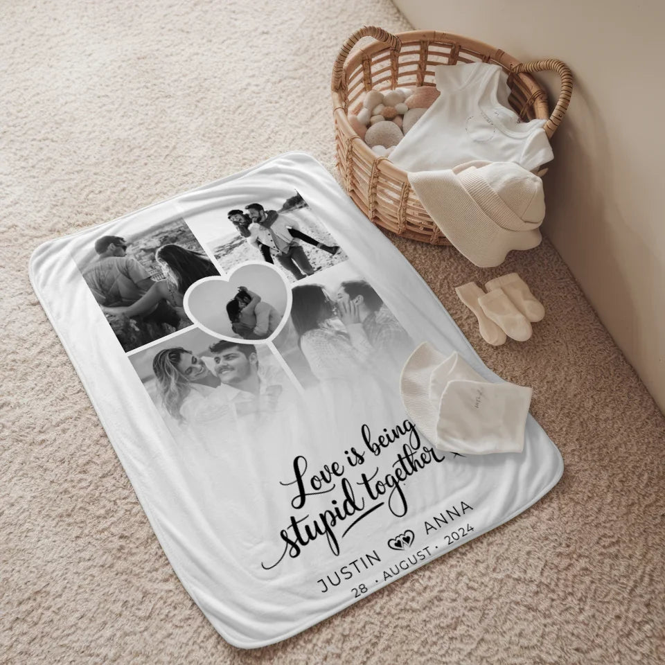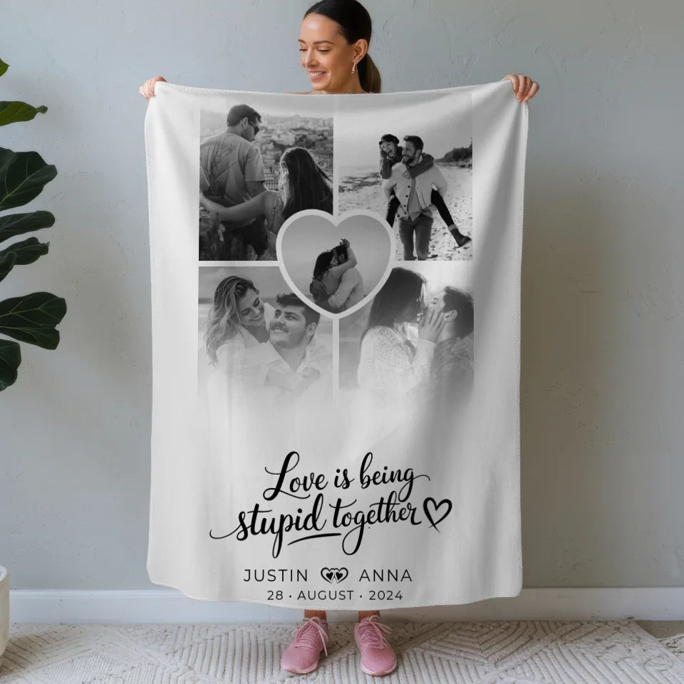 Personalisierte Decke Paare Fotocollage 5 Fotos Love Is Being Stupid Together