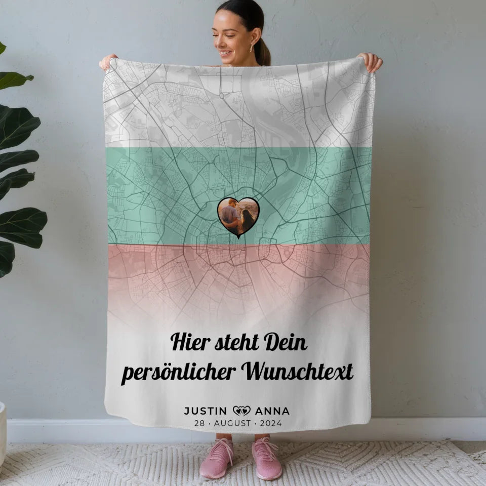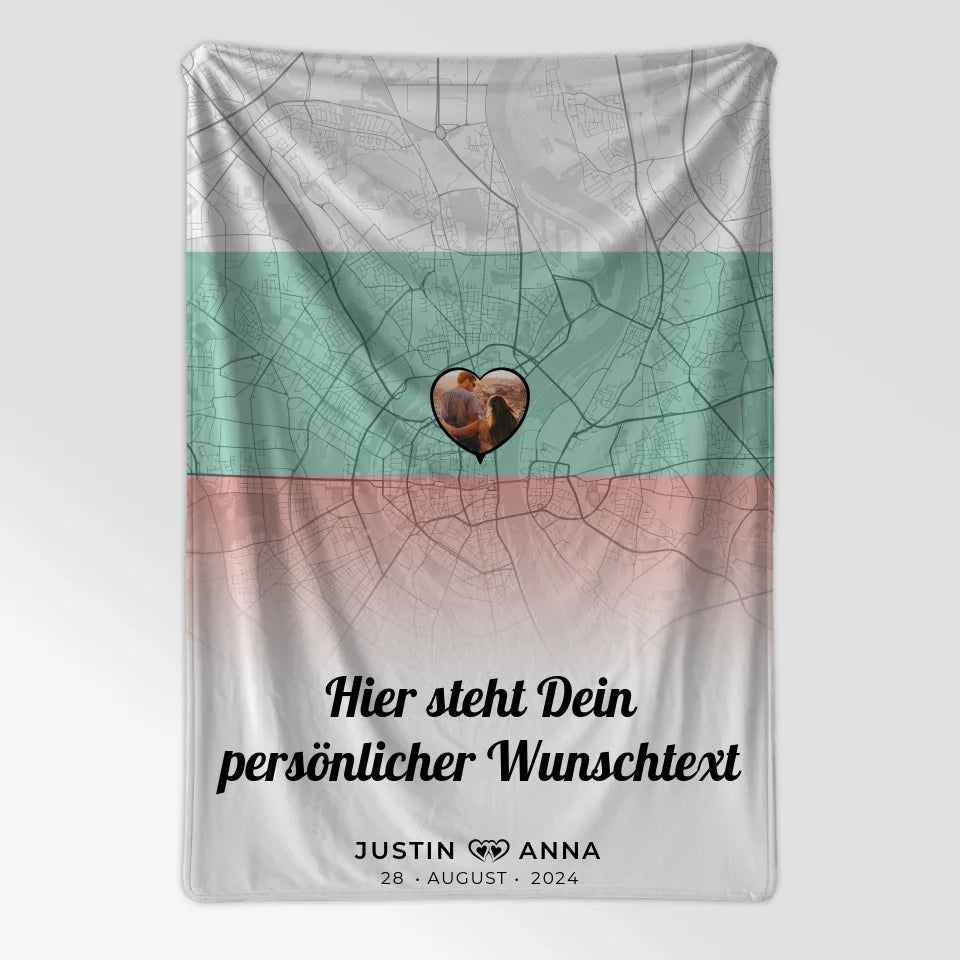 Personalisierte Decke Paare Stadtkarte Bulgarien Foto Wunschtext