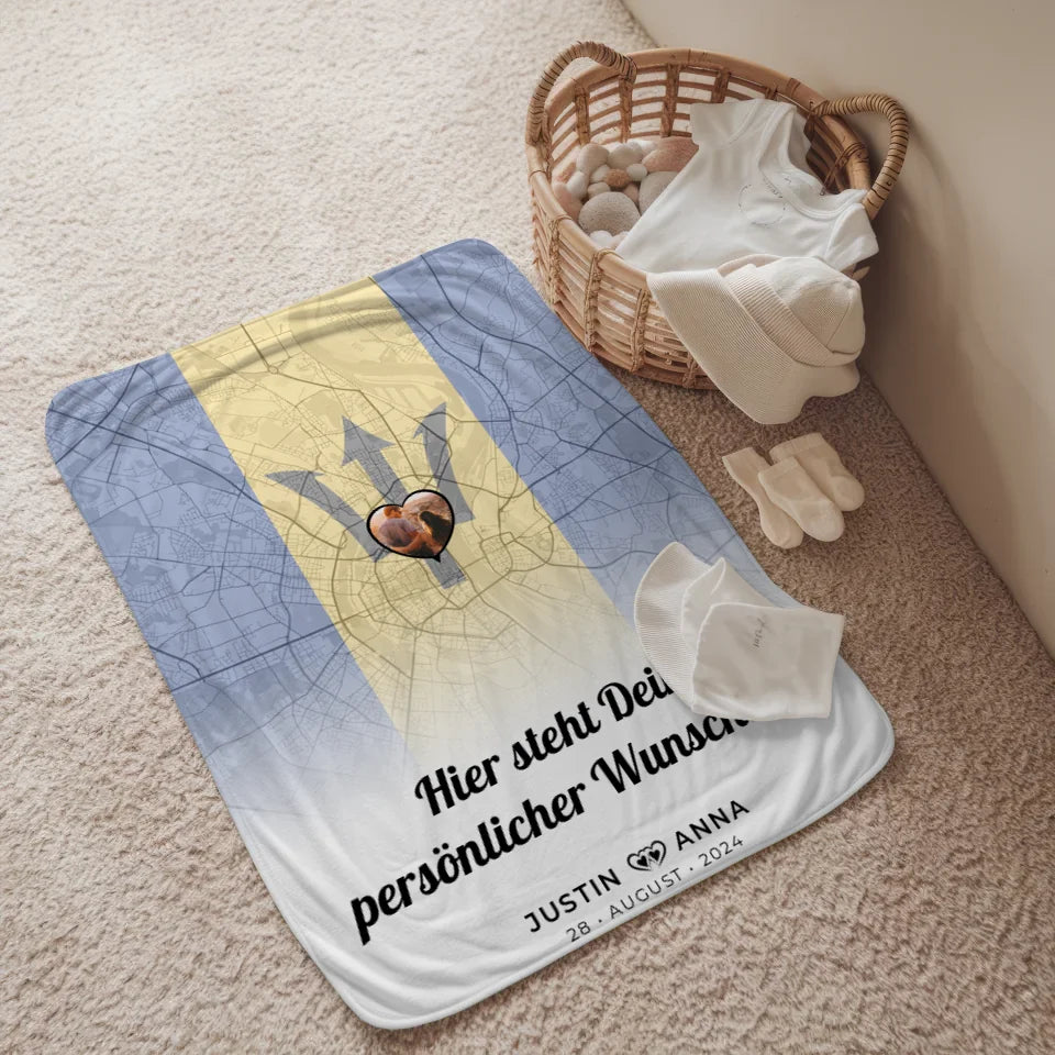 Personalisierte Decke Paare Stadtkarte Foto Barbados Wunschtext