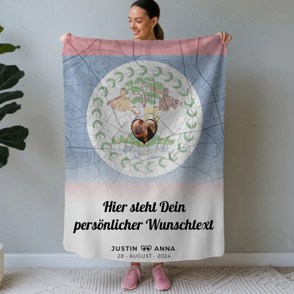 Personalisierte Decke Paare Stadtkarte Foto Belize eigener Wunschtext