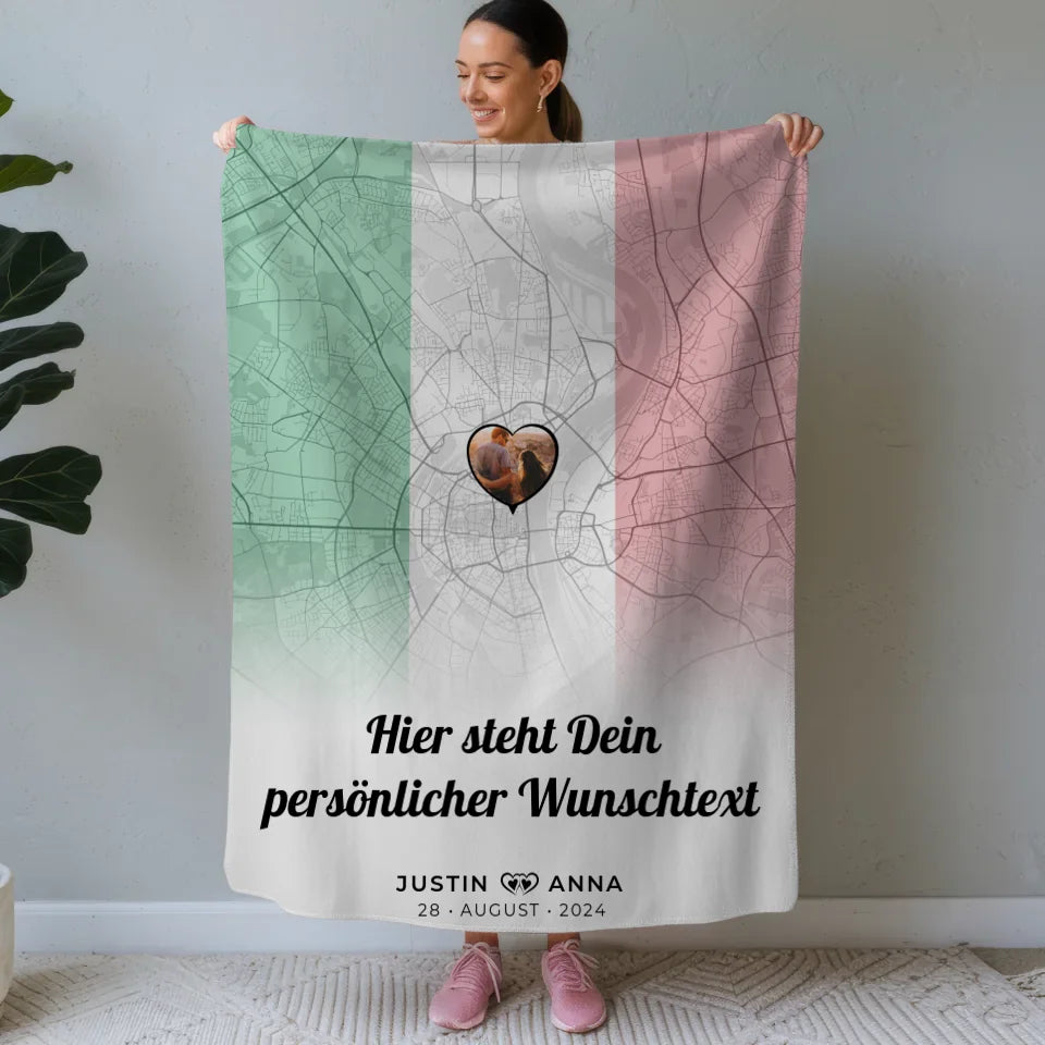 Personalisierte Decke Paare Stadtkarte Foto Italien Wunschtext
