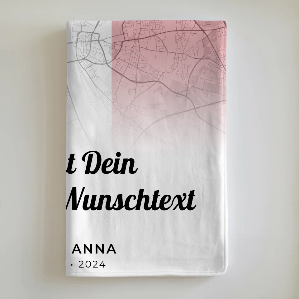 Personalisierte Decke für Paare – Stadtkarte, Foto und Wunschtext
