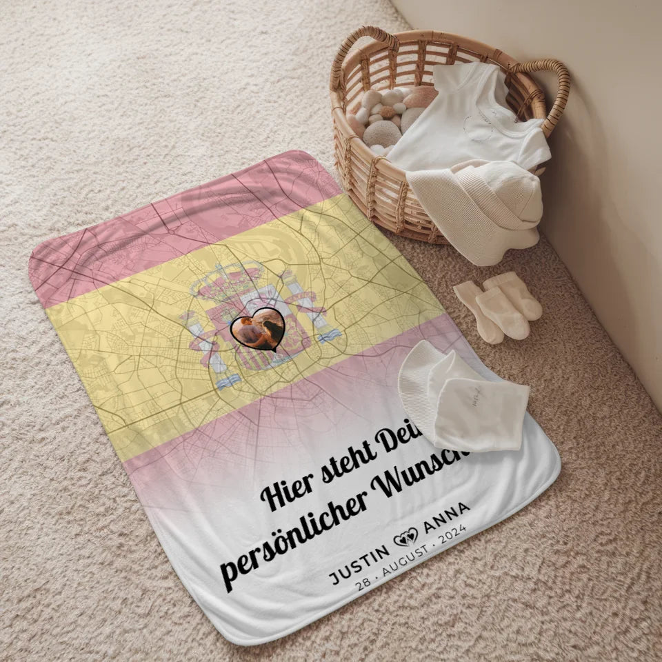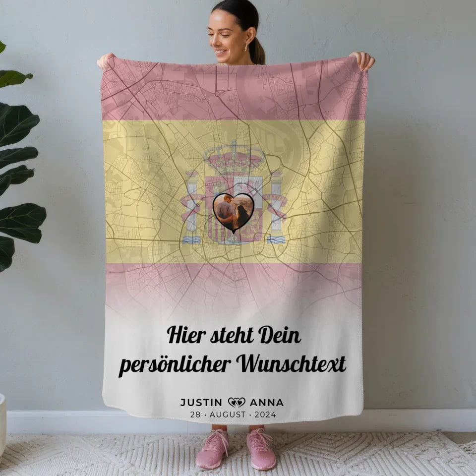 Personalisierte Decke Paare Stadtkarte Foto Spanien Wunschtext