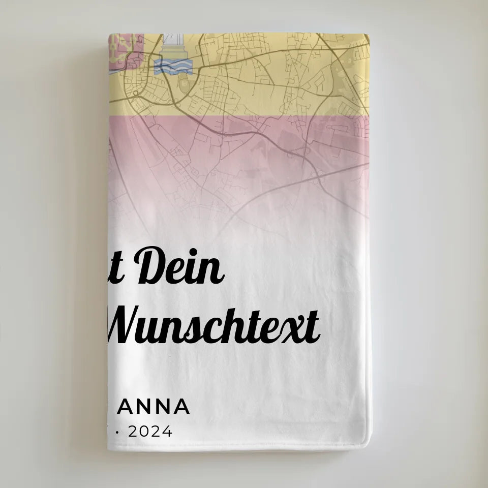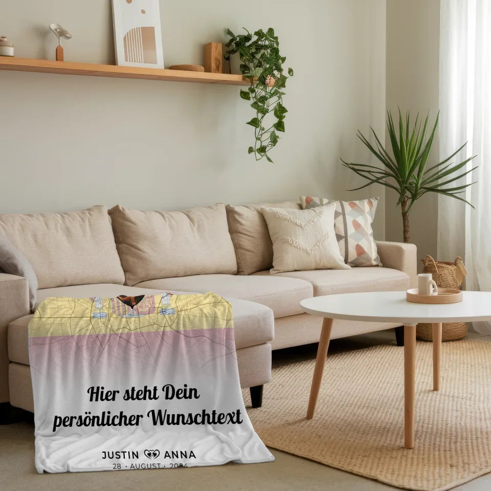 Personalisierte Decke für Paare: Stadtkarte, Foto und Wunschtext