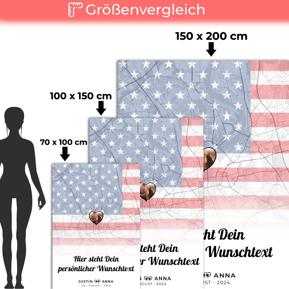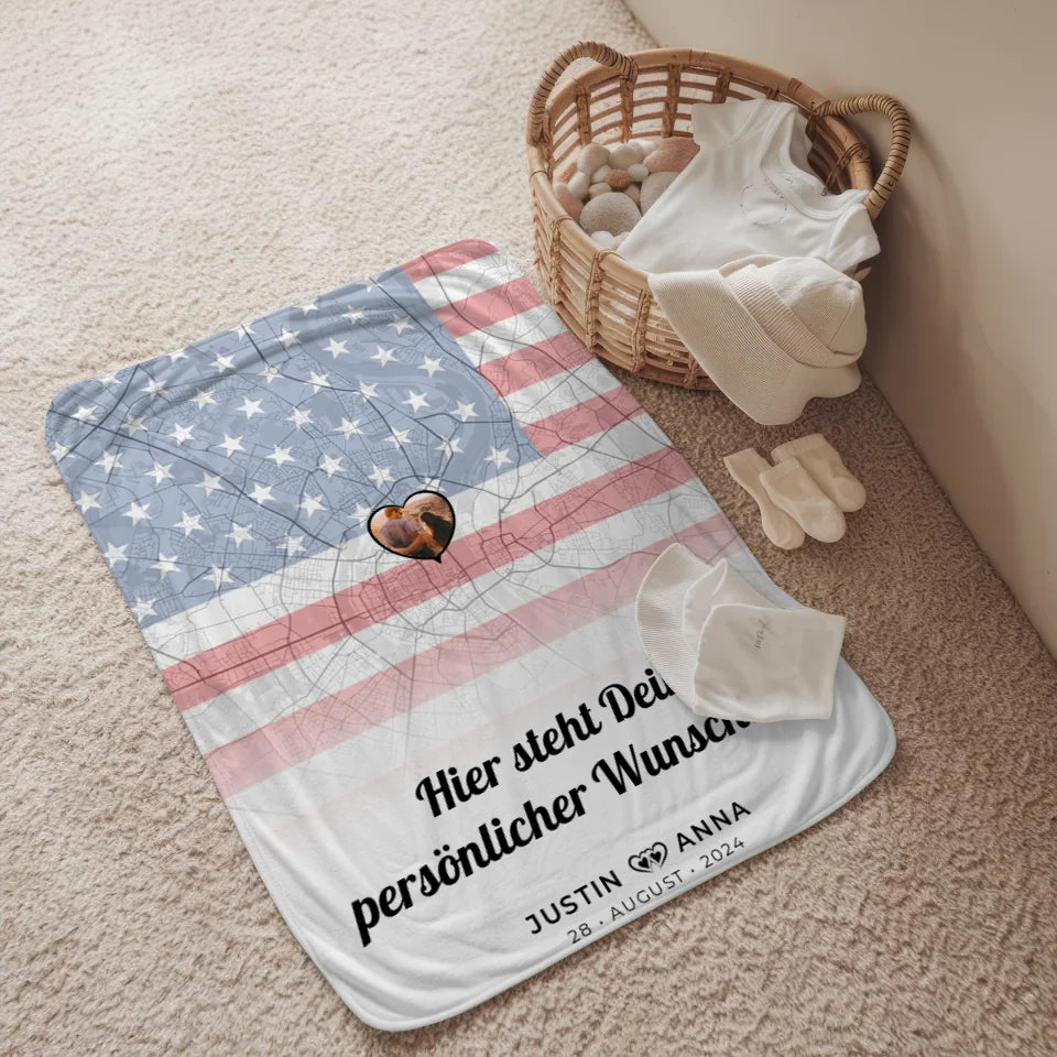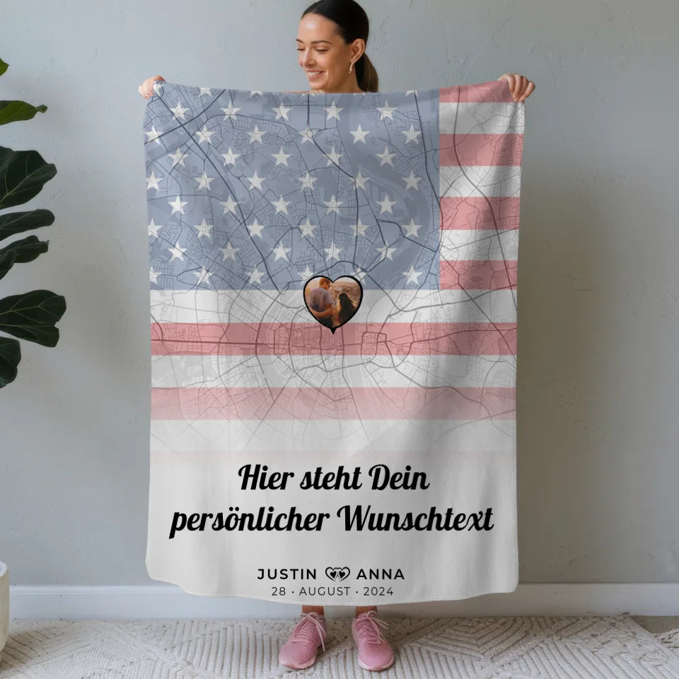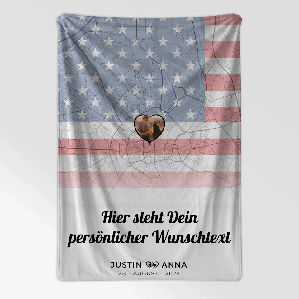 Personalisierte Decke Paare Stadtkarte Foto USA Eigener Wunschtext