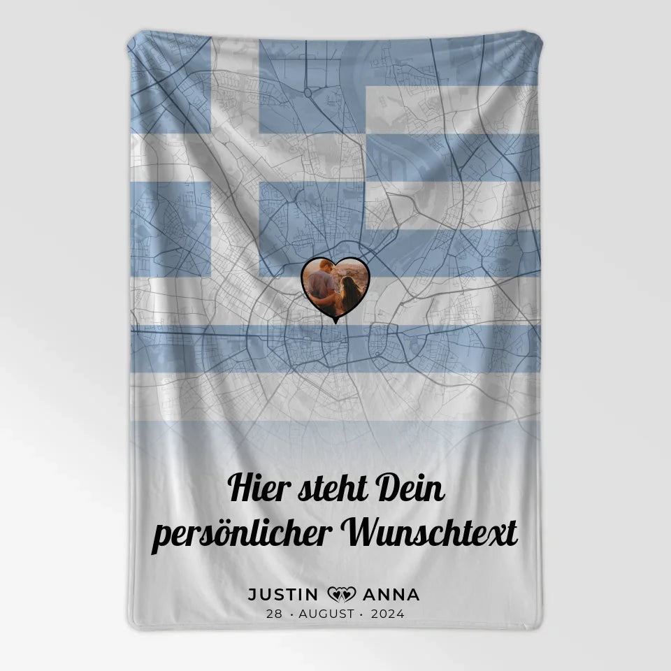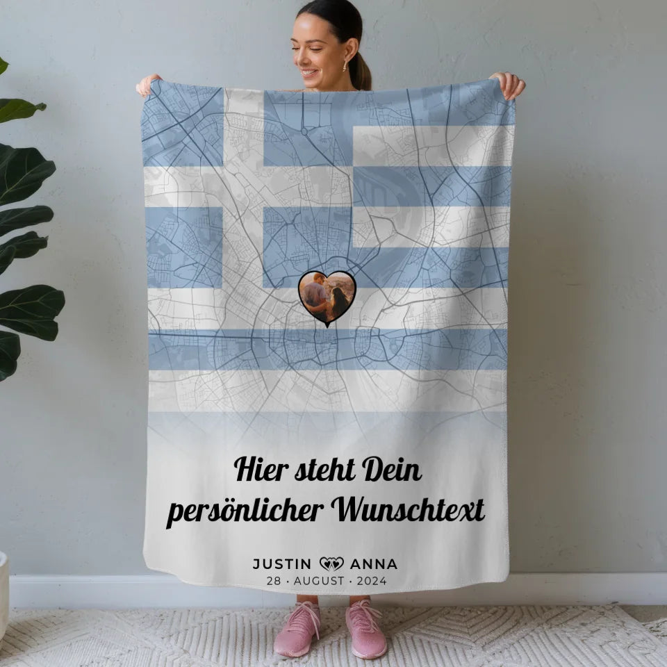 Personalisierte Decke Paare Stadtkarte Griechenland Foto Eigener Wunschtext