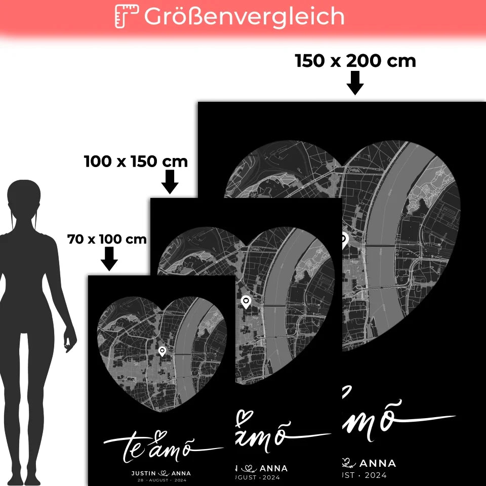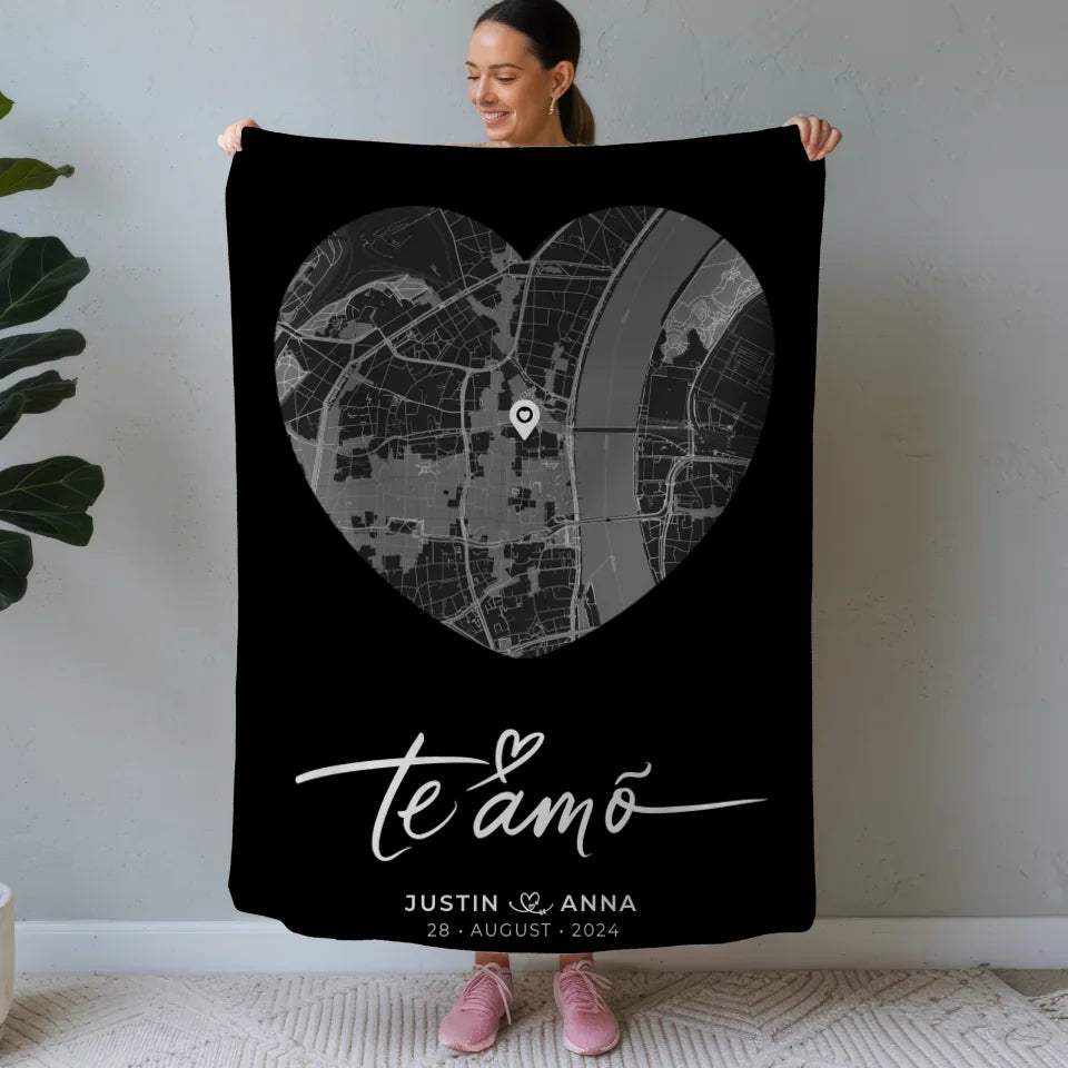 Personalisierte Decke für Paare – Stadtkarte in Herzform 'Te Amo Heimat'