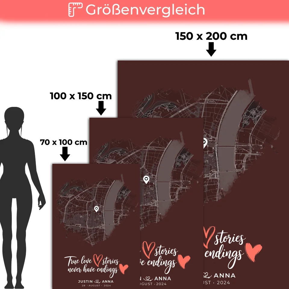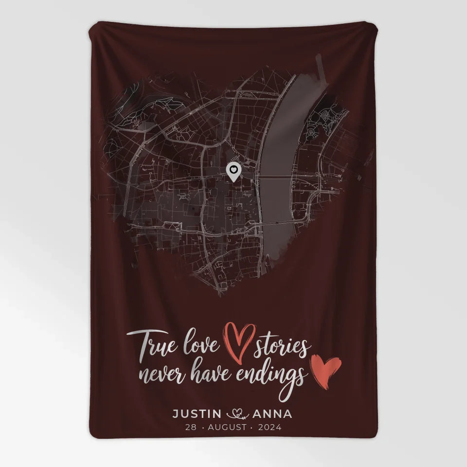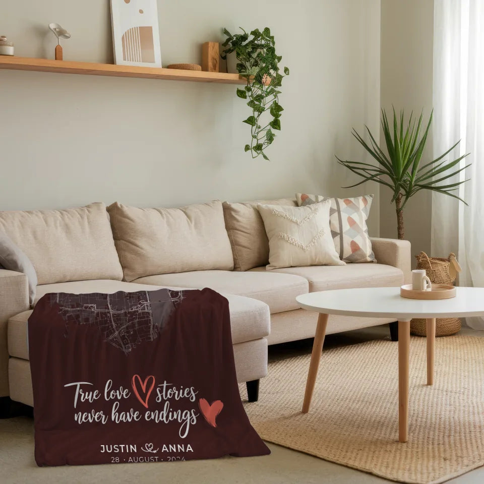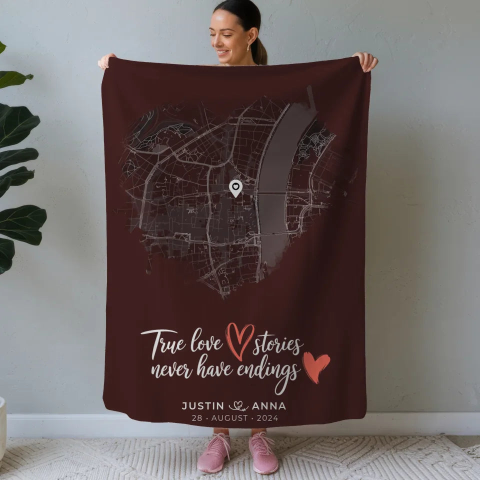 Personalisierte Decke Paare Stadtkarte Herzform True Love Stories