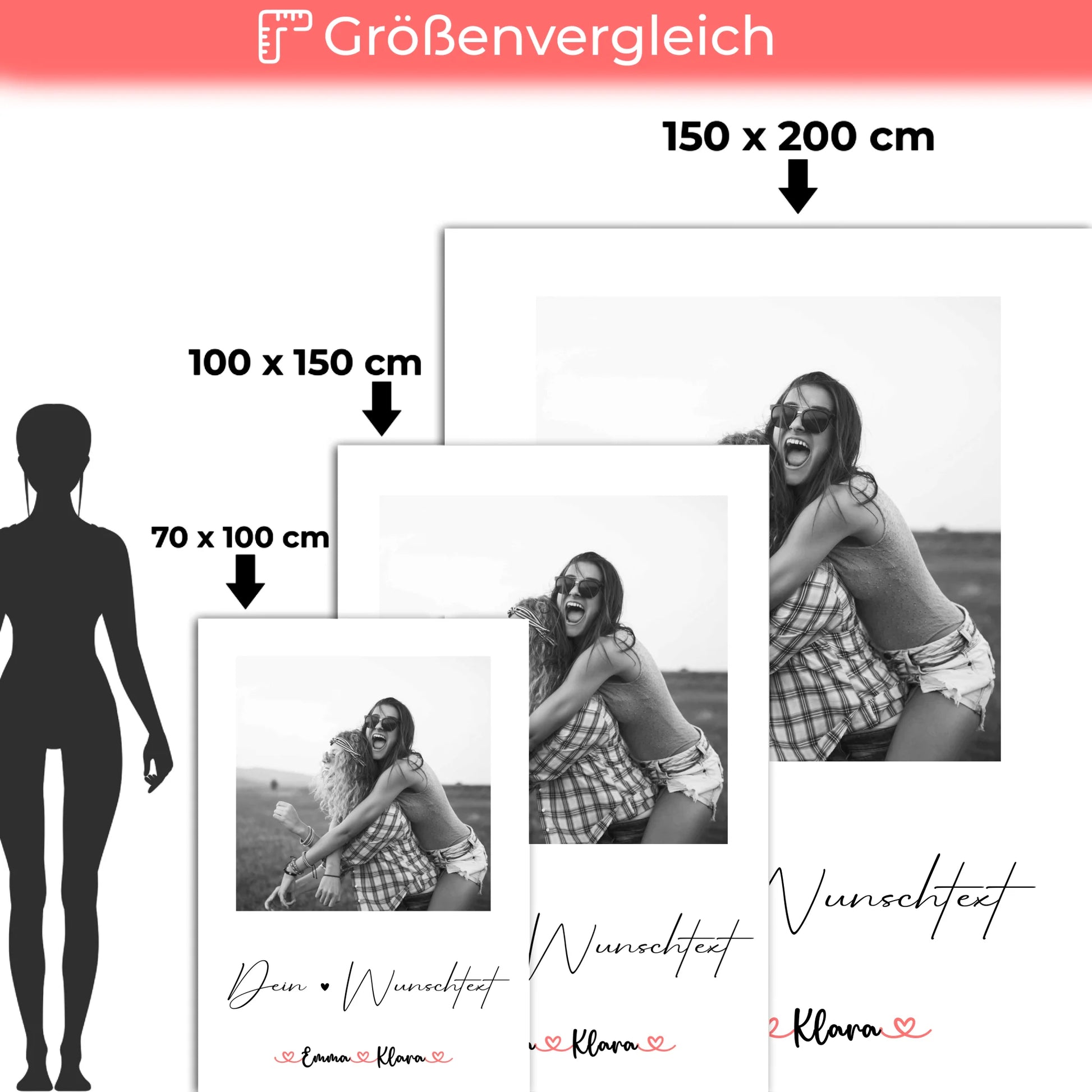 Überrasche deine Schwester zum Geburtstag mit einer liebevoll gestalteten, personalisierten Decke. Du kannst 1 Foto, Hintergrundbild, Namen und einen eigenen Spruch oder Wunschtext angeben, um ein emotionales Geschenk mit modernem Black & White Design zu schaffen, das lange Freude bereitet.