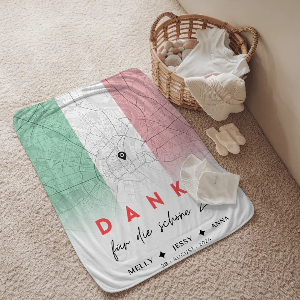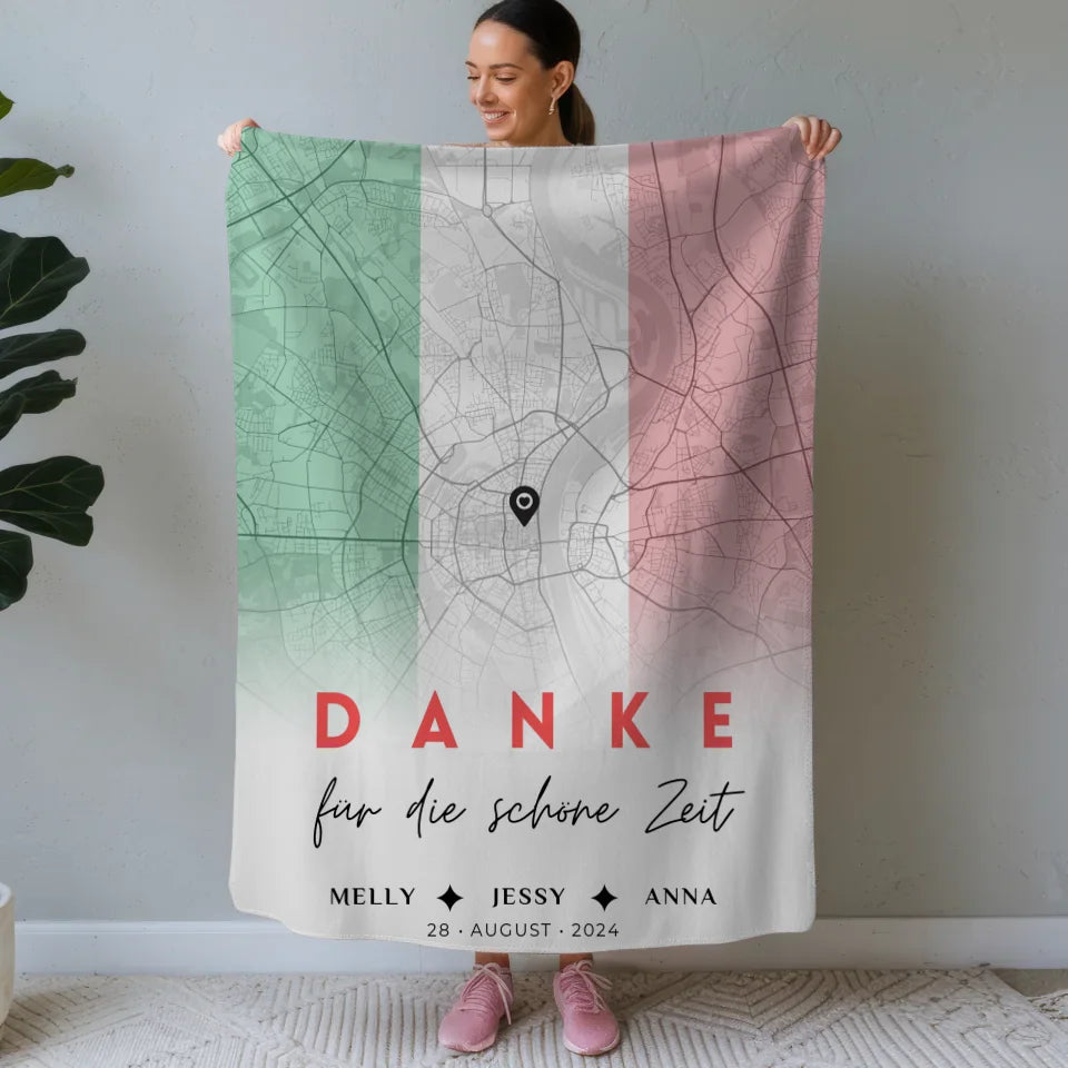 Personalisierte Decke Schwester Stadtkarte Italien Danke für die schöne Zeit