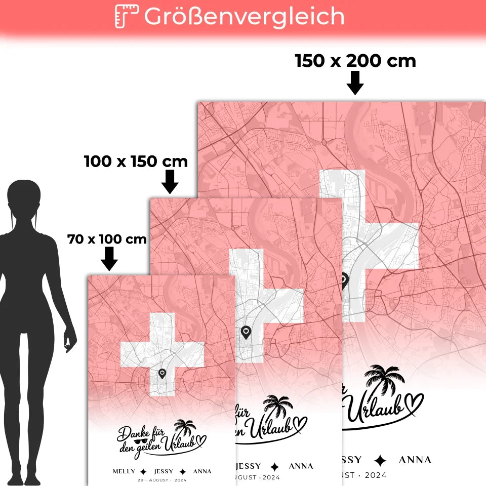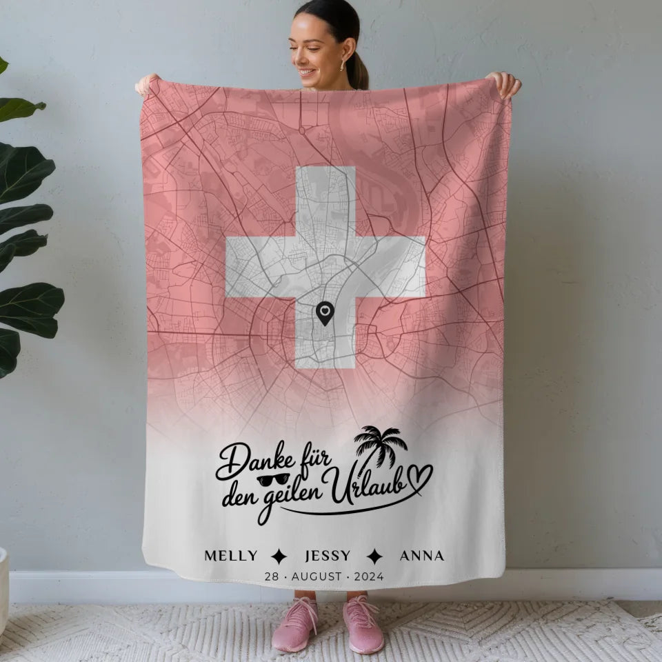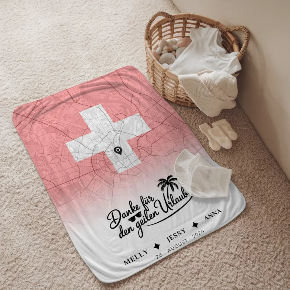 Personalisierte Decke Schwester Stadtkarte Schweiz Urlaub Danke
