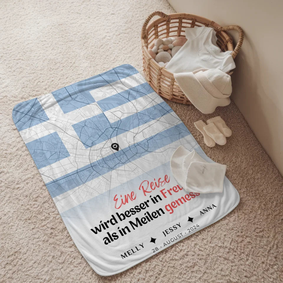 Personalisierte Decke Schwester Stadtkarte Urlaub Griechenland