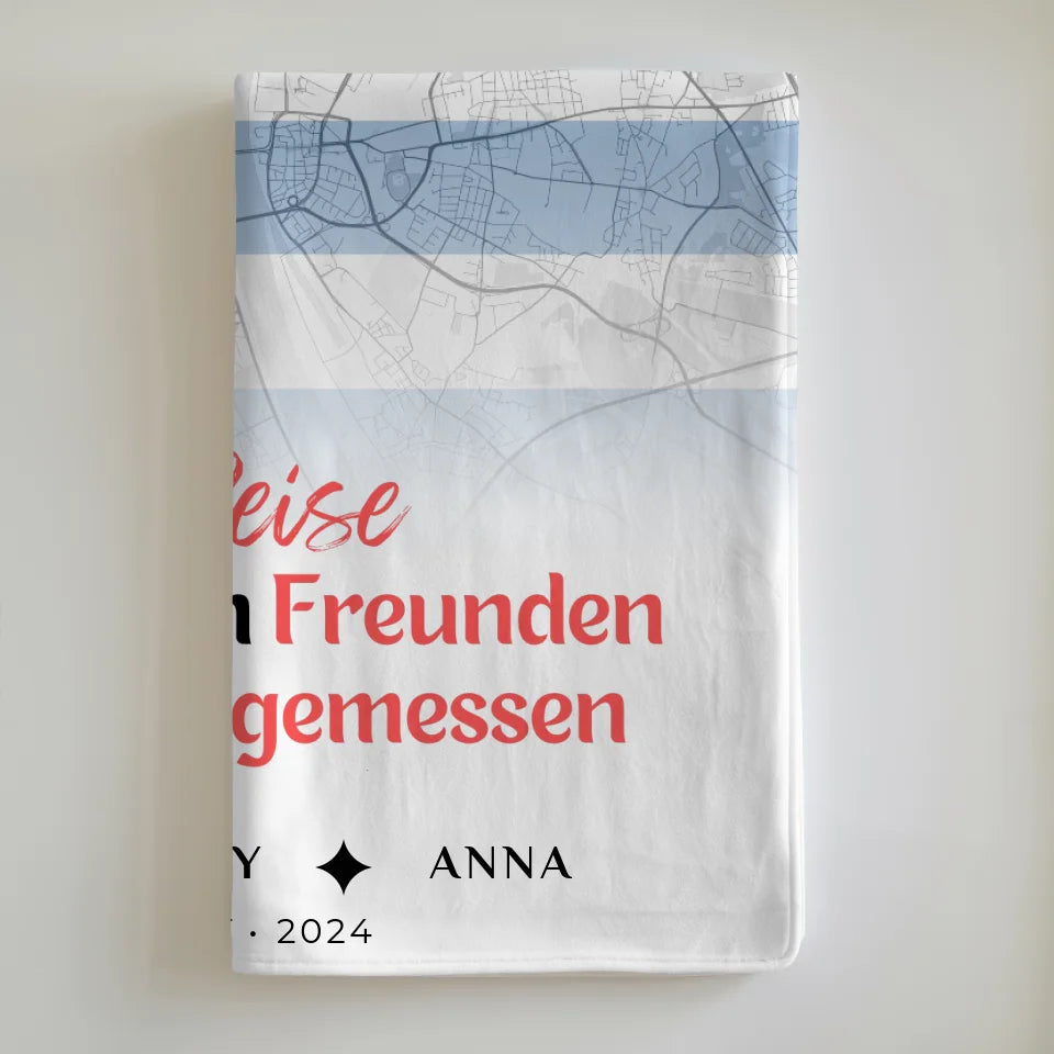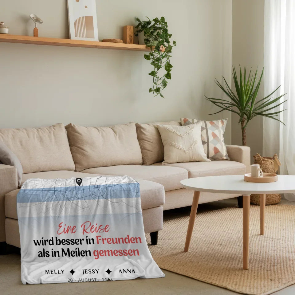 Ob zum Geburtstag, zu Weihnachten oder einfach als nette Aufmerksamkeit – diese personalisierte Decke wird garantiert das Herz Deiner Schwester höher schlagen lassen. Auf dem Design prangt der wunderschöne Spruch: 'Eine Reise Wird Besser In Freunden Als In Meilen Gemessen', der die Bedeutung von Freundschaft und gemeinsamen Erlebnissen unterstreicht.
