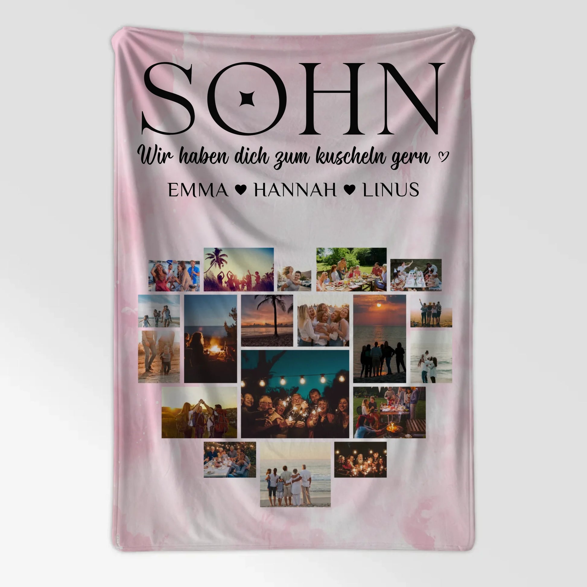 Personalisierte Decke Sohn Fotocollage Herzfoto Geschenk
